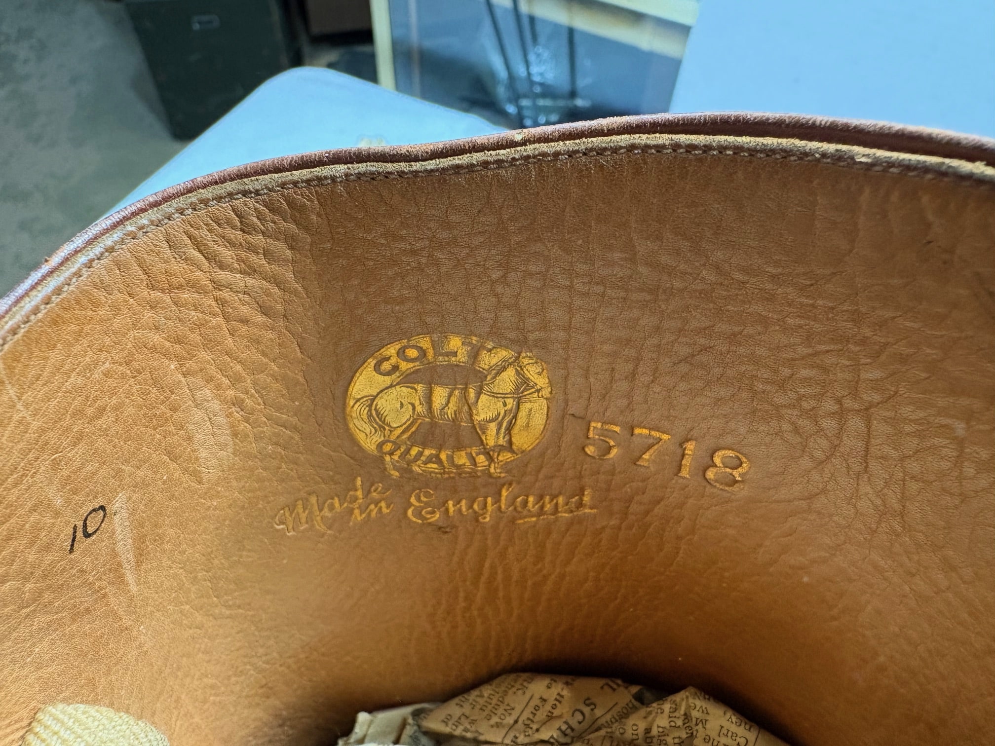 Original English made leather riding boots. Used condition. Size 10 BOOT. 1 only. Sold as is. No returns.