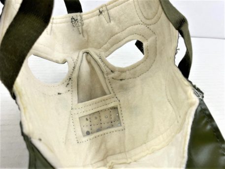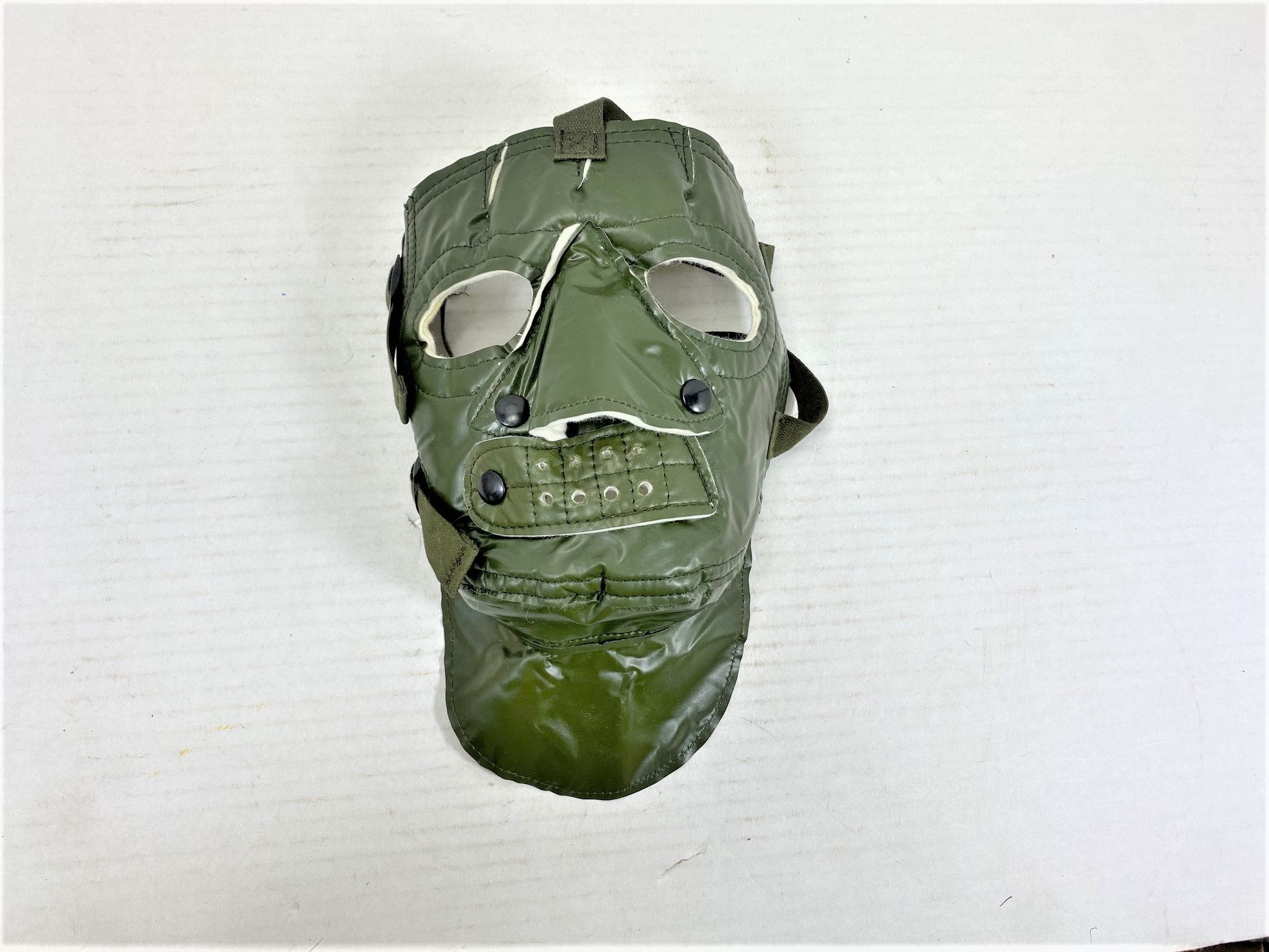 Vintage new old stock masks are made with a heavy duty outer vinyl and a thick felt inside. Made for extreme cold weather. Adjustable straps and buttons for nose and mouth. Heavy cotton blend liner and vinyl outer ensure protection from the cold.