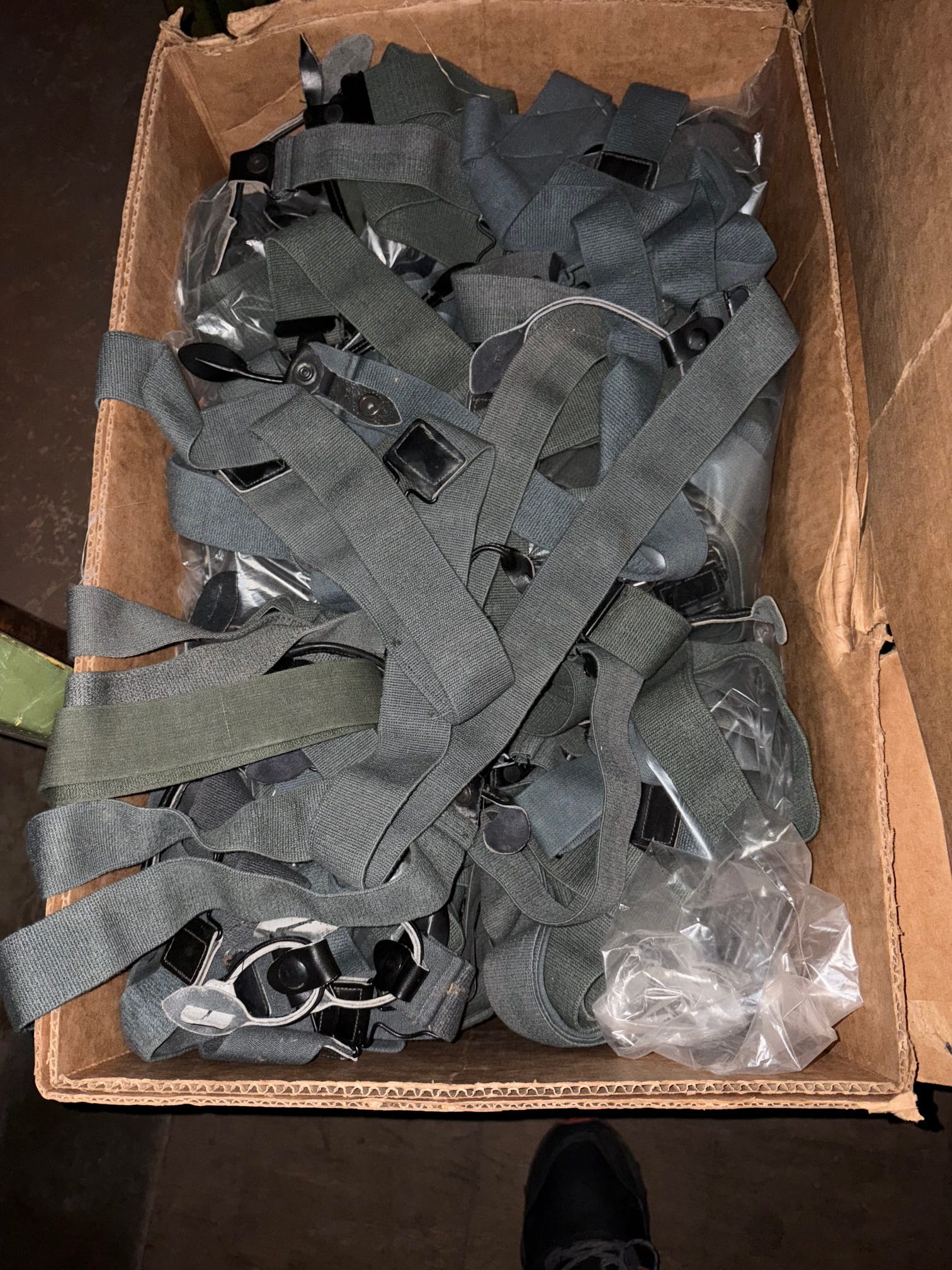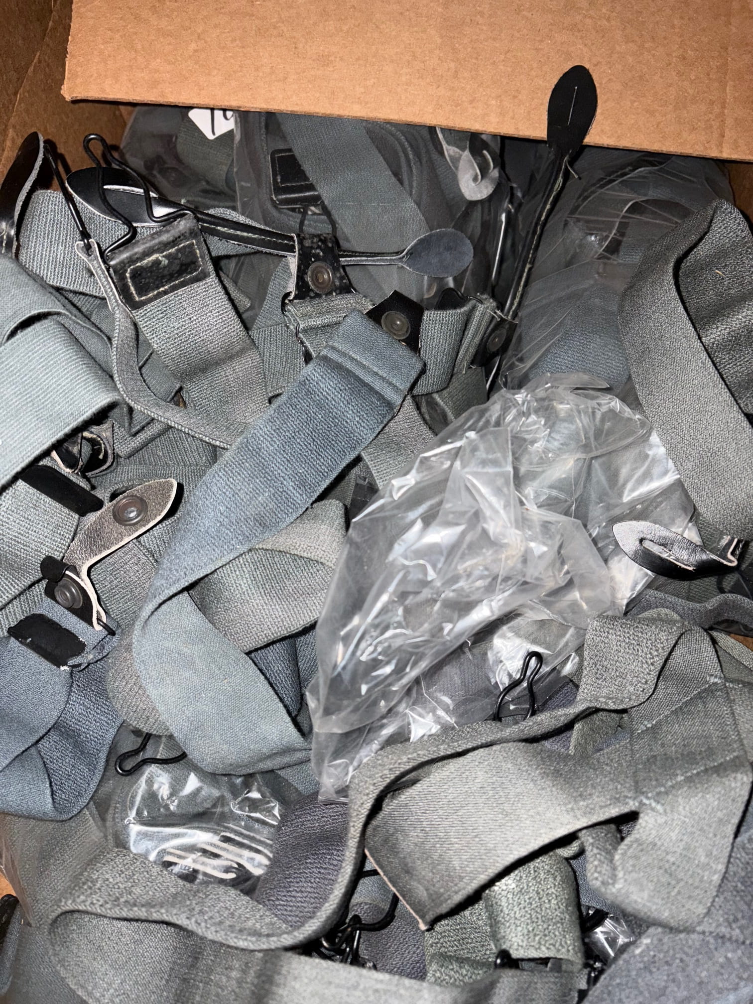 Genuine USAF Issue F1-B Flight Trousers Suspenders. Elastic adjustable suspenders. These are new old stock with some shelf-wear/staining from years of storage. *suspenders only*