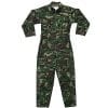 Reproduction Flightsuit, coveralls. Made of 65% polyester, 35% cotton. Many storage pockets. Zip Front. woodland camo color coveralls. Hook and loop adjustable waist and cuff tabs. Fits one size larger than indicated