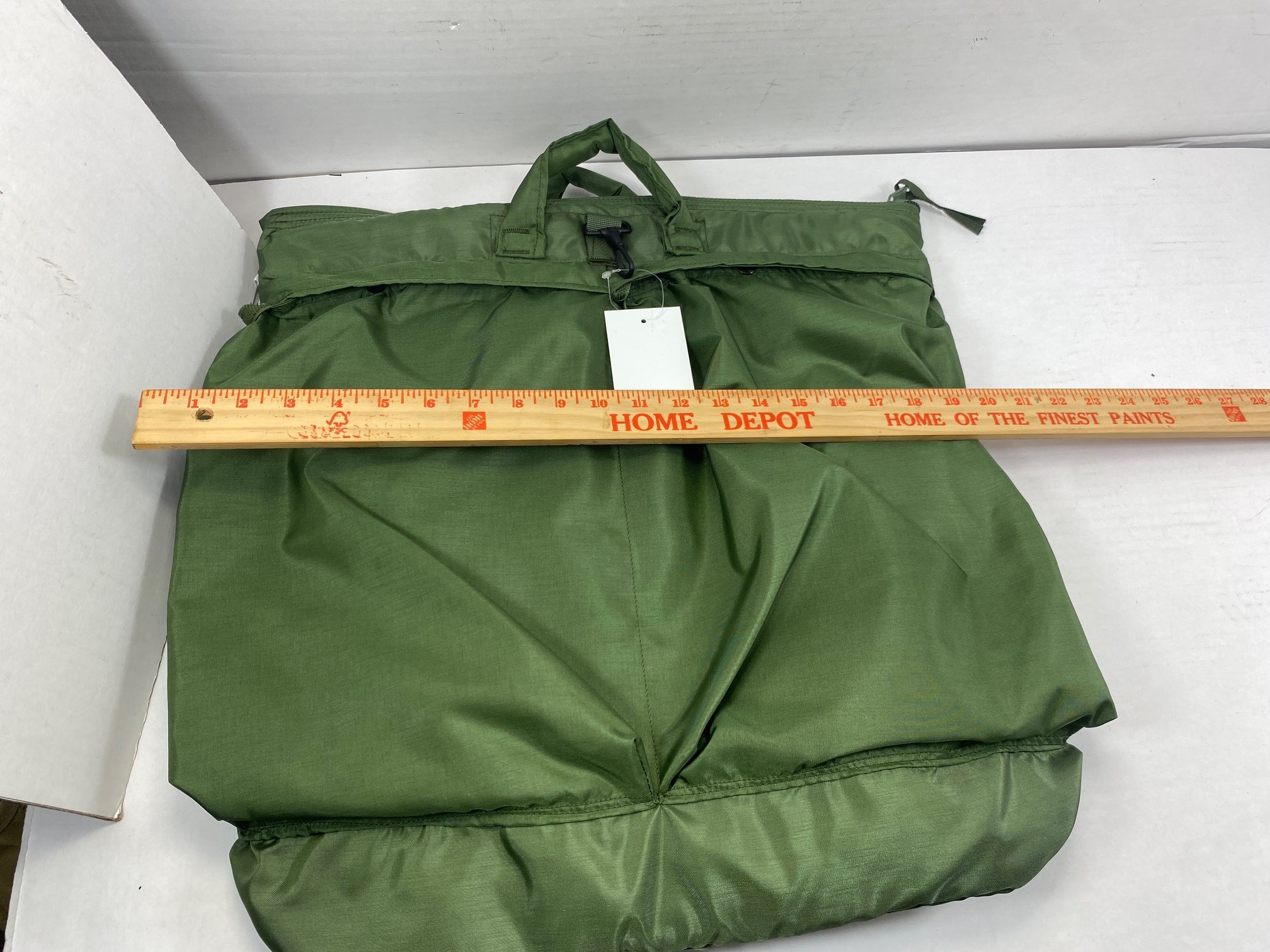 Used by military aircraft pilots to keep the flight helmet, headset, oxygen masks and other essential personal aviator gear in one handy bag. We sell these to military surplus enthusiast for all sorts of uses. Makes a great paintball gun bag, day bag, clothing/towel bag.