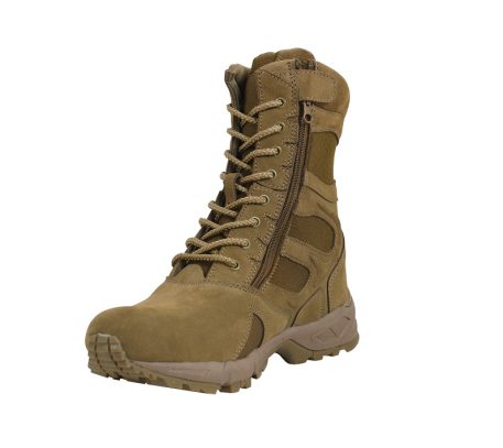 Rothco’s Forced Entry 8″ Coyote Deployment Boots with Side Zipper is designed like a running shoe. The combat boot offers optimal comfort and a mountaineer rubber outsole for improved traction.