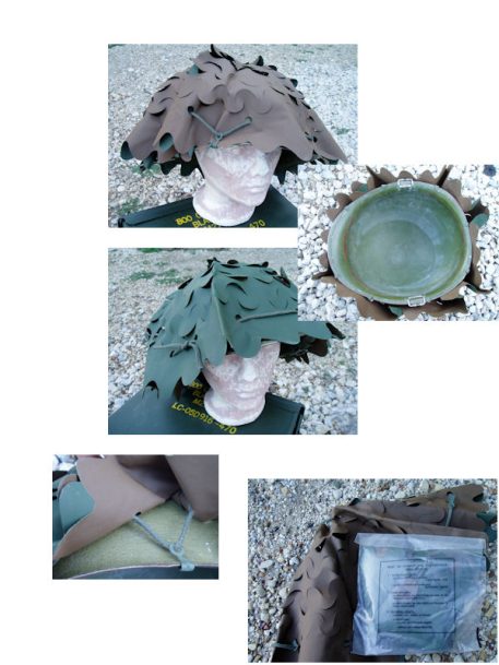 New from original military packaging. Latex nylon reinforced camouflage army helmet cover. Reversible from brown to green. Made to clip onto army helmets but will also will work on boonie hats or just right on top of your head.