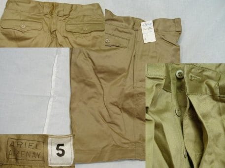 French Khaki Legion Shorts, New- 4 pocket button fly. All cotton. Pleated front. Genuine surplus. all size 36 waist