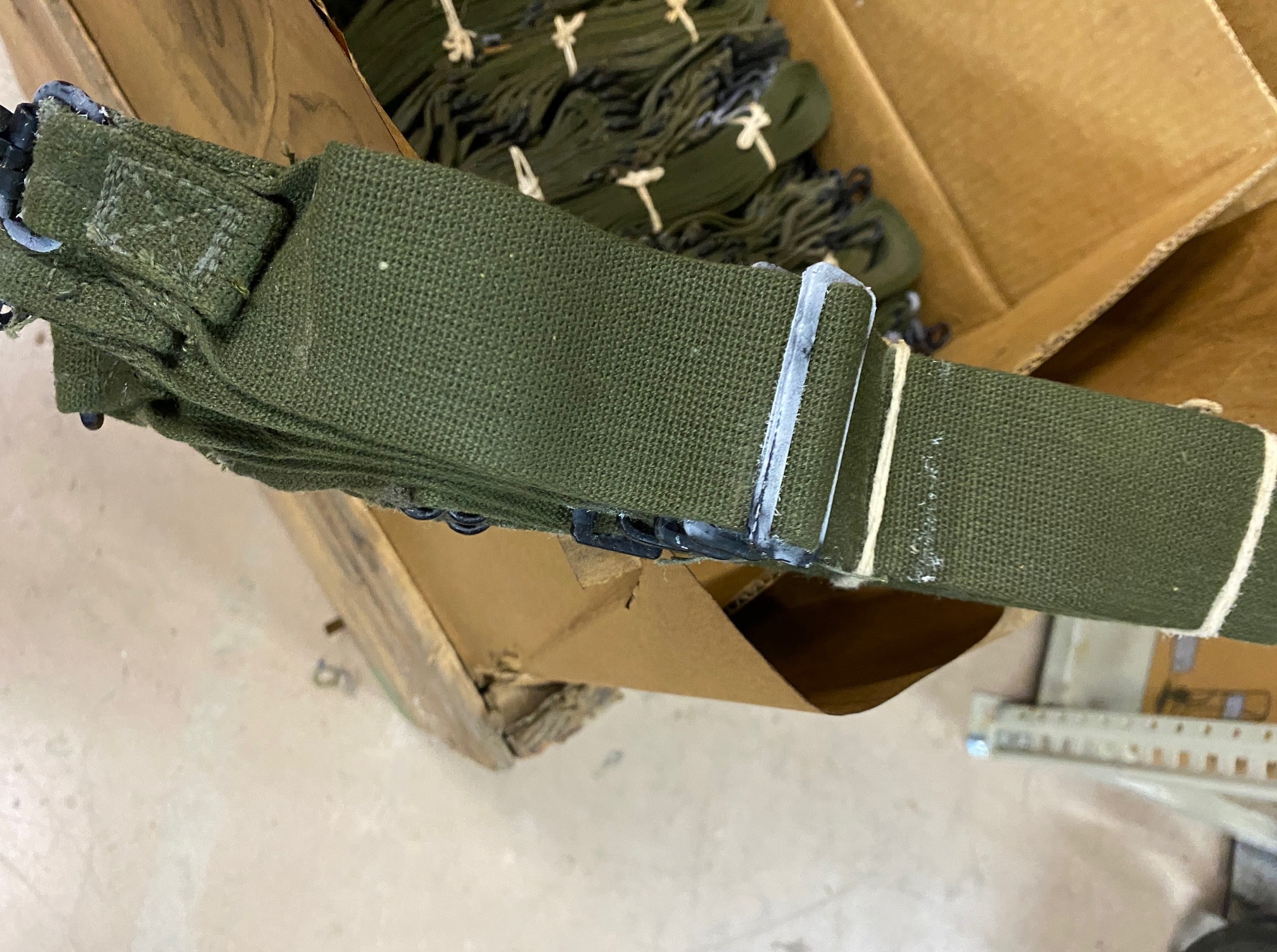 Military issue general purpose cotton strap. “GP strap”. 1 strap. Multi-purpose 2 inch wide cotton strap is a great carry sling for all types of military issue bags and shoulder packs.