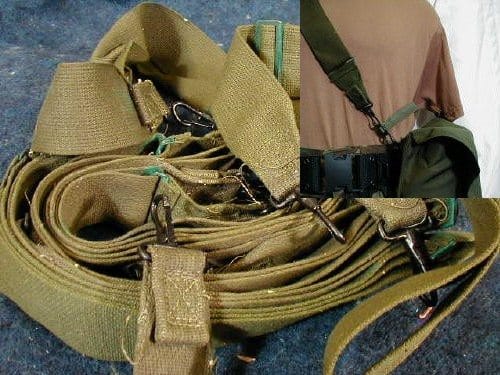 Military issue general purpose cotton strap. “GP strap”. 1 strap. Multi-purpose 2 inch wide cotton strap is a great carry sling for all types of military issue bags and shoulder packs.