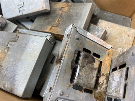 Original German esbit cook stove. All of these compact lightweight cook stoves will burn Military trioxane, hexamine, or even store-bought sterno. Perfect when building a camp fire isn’t practical due to time constraints or locations. Used condition. Oxidation and burn marks. Sold individually. Price per stove.