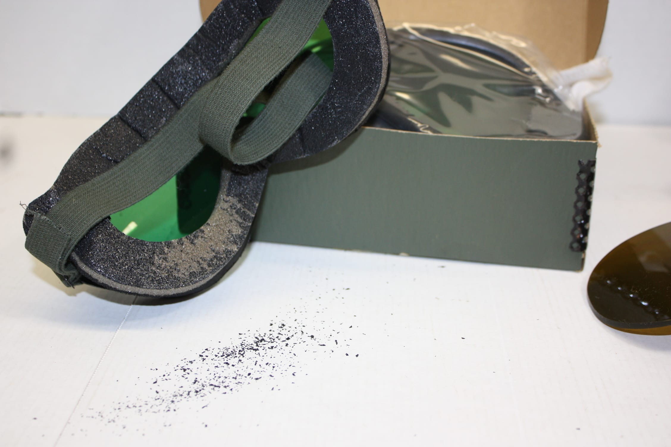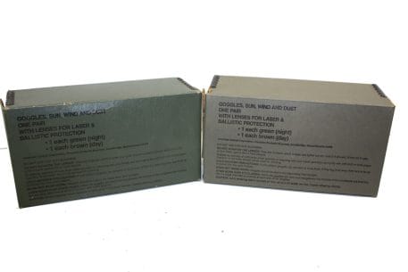 Note: Most of these are from Desert Storm era- the seal on the foam cushion inside of the goggle has begun to deteriorate and will flake off– which can become a bit messy and bothersome.