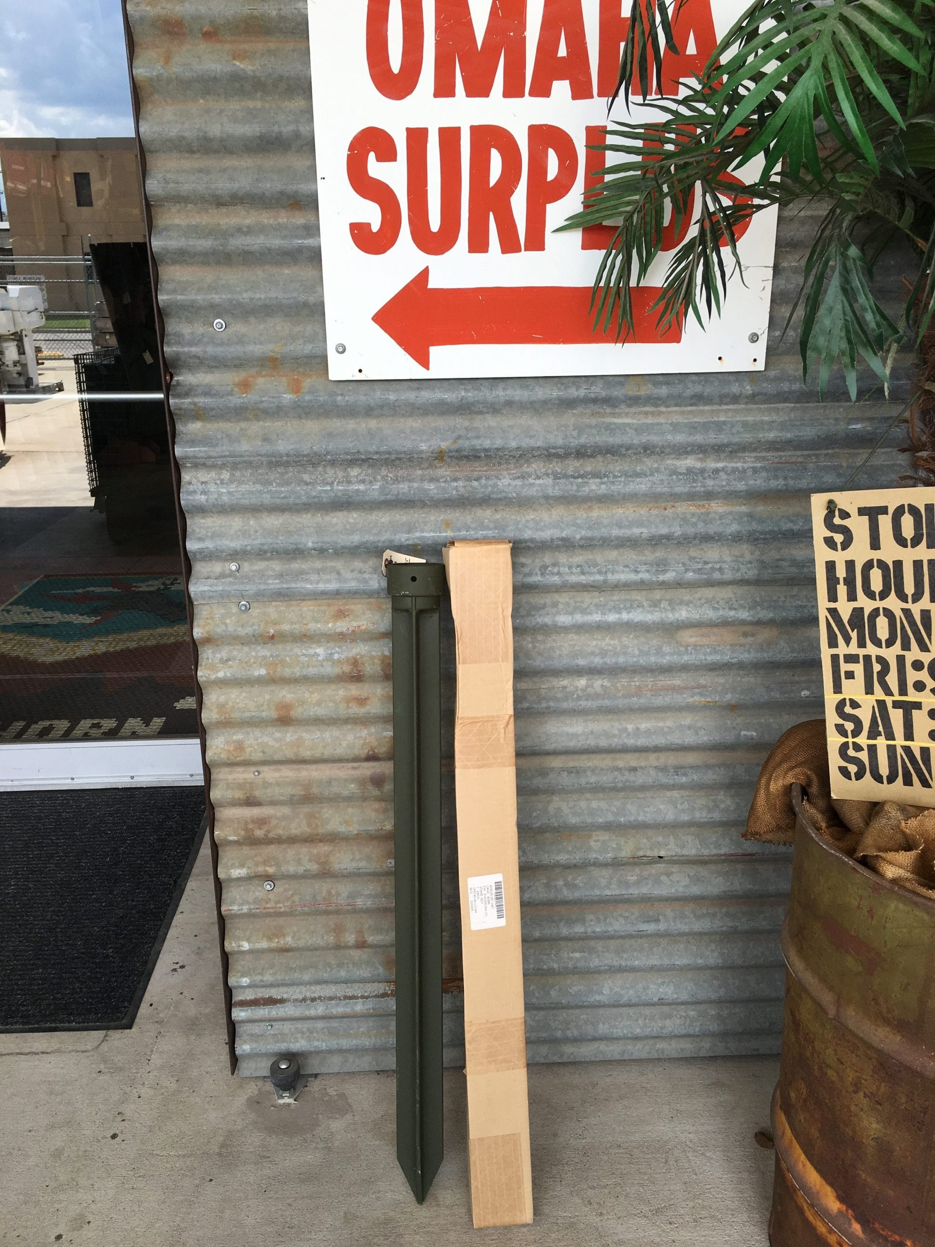 Military issue aluminum stakes designed to support your tall and heavy objects. Anchors are powder-coated olive drab green. Approx. 40 inches long 2 inch wide