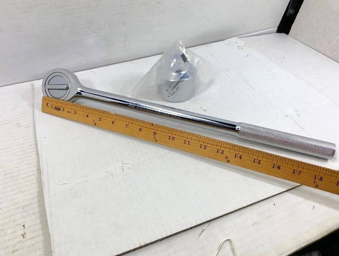 GW GEARWRENCH Ratchet w/ 2 1/4 socket, new condition. Ratchet and socket. Surplus out by government. New condition but not in original packaging except for socket.