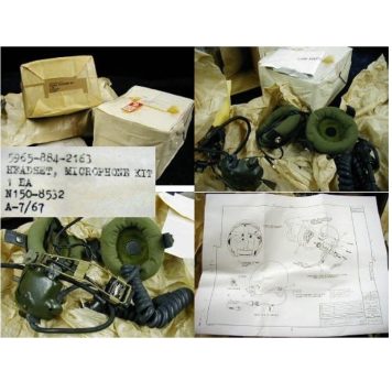 Replacement microphone and headset for the Vietnam tankers helmet. New, old stock with original box. 1967 dated replacement kit includes: Headset, Switch, Retractable Cord, Mic & Boom and assembly hardware. Will not fit the 1966 Sierra model tankers helmet.