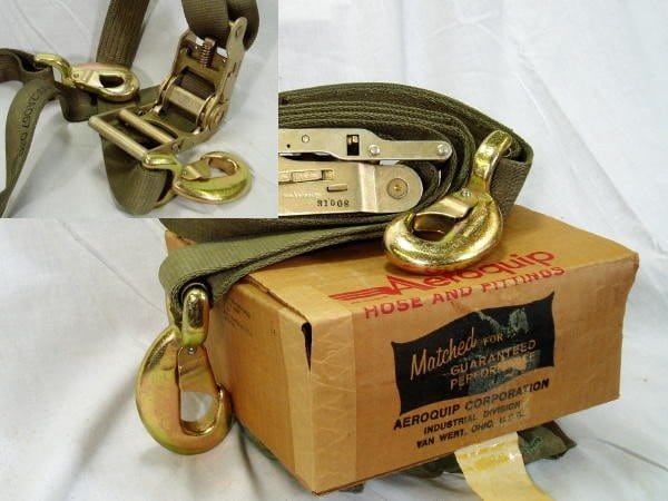 Ratchet strap. Extra Heavy duty military grade vehicle ratchet strap. New in the box. 10,000 lb. test. 1 3/4″ x 6′ . Weighs 7 lbs.