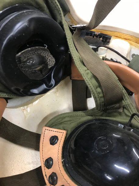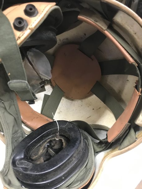 These flyer’s helmets are used in good condition. These look very similar to the chopper helmet (SPH-4). The color is white. They do not have an attached visor; but there are pre-marked holes so that a visor kit could easily be attached. Foam inside earpieces has deteriorated and needs to be replaced. Used, sold-as is. Size: Regular