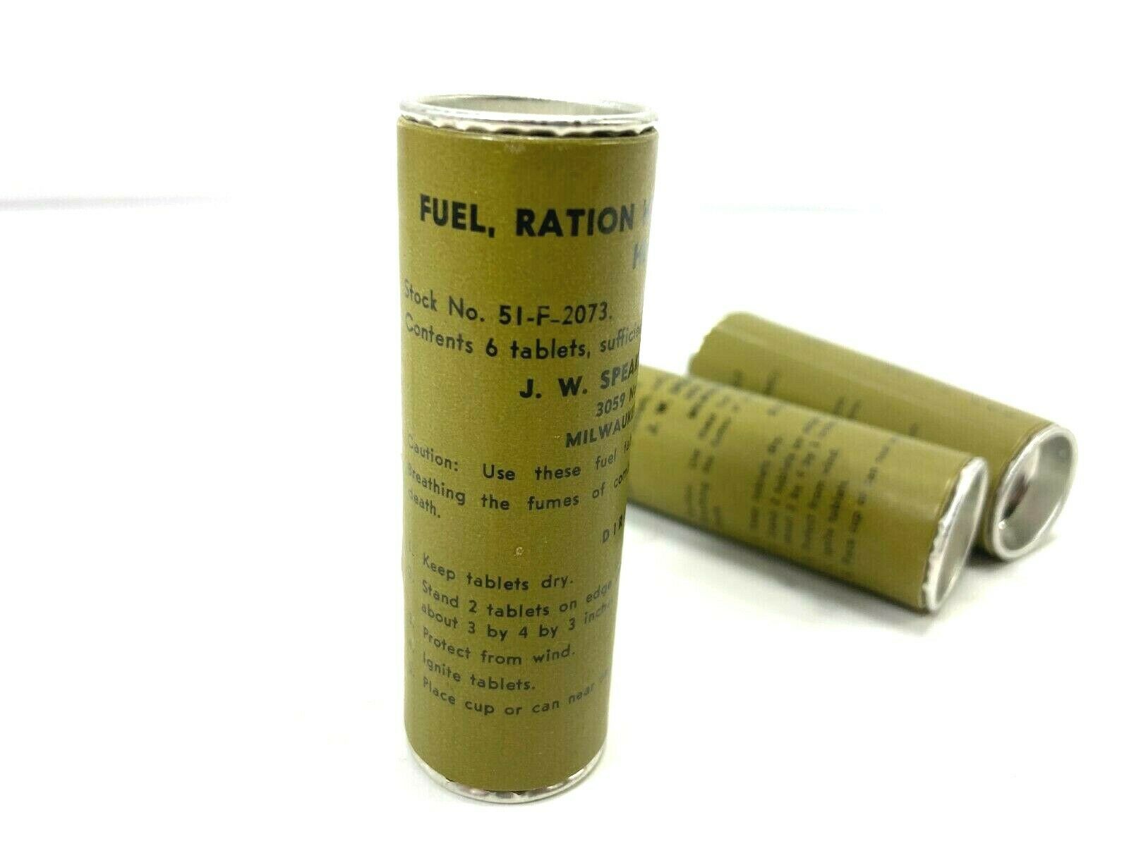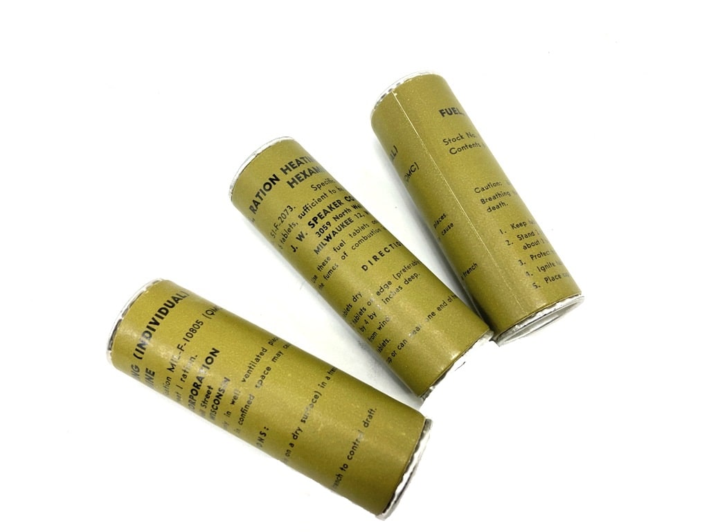 Perfect for smaller meals or for emergency fire starters when you run into damp or wet wood. 6 tablets per tube. Fuel Ration heating individual hexamine. Price is per tube.