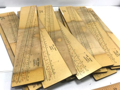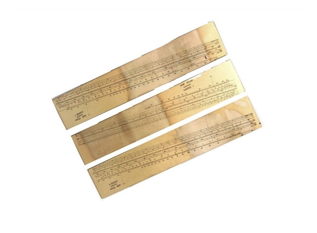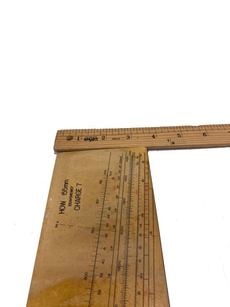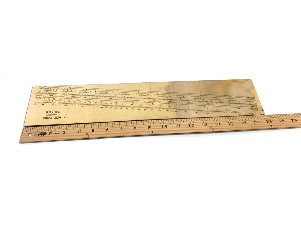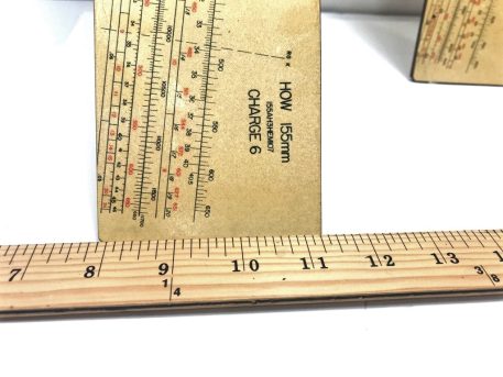 Howitzer scales in poor condition. They were part of a slide rule but the plastic slide has deteriorated and we are selling just the ruler part.