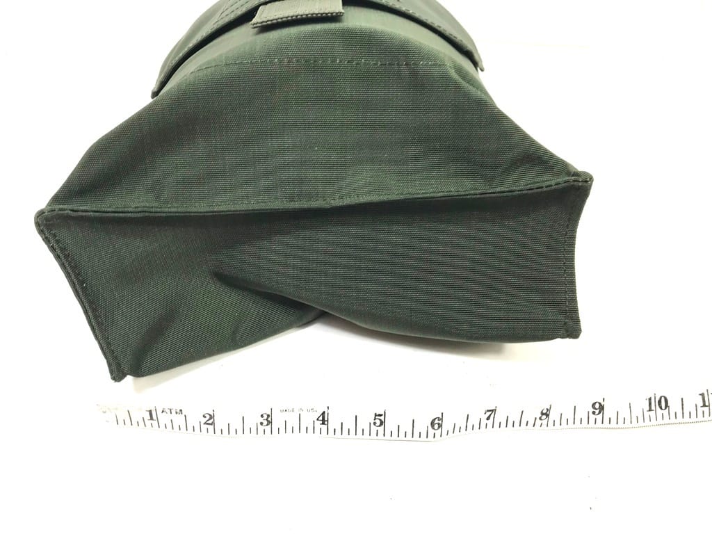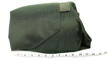 Sturdy nylon codura is reenforced with plastic stiffener and secures with hook and loop lid so its easy to get your gear in and out with one hand. Perfect for loose shells, binoculars, cameras, goggles, and even gas masks. Can be worn on belt and features elastic leg strap that velcro’s tight to keep the bag secure. Optional shoulder strap completes this all-round bag. We do send a GP strap with this bag for the shoulder option. Approx 8″ x 10″ x 6″, can be stretched an inch or 2 more from that.