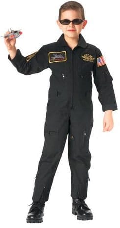 Youth size aviator flight suit. Black, with patches. Children’s version of the Air Force pilot suit. Cotton / poly blend perfect for costume or more. New import, various sizes.