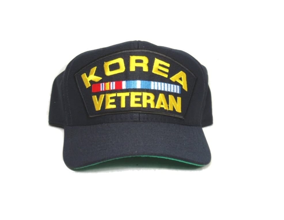 Korea Vet Cap with Ribbons. Ship’s cap style ball cap manufactured in US by Eagle Crest. Adjustable to fit most sizes. Solid poly material with patch front emblem.