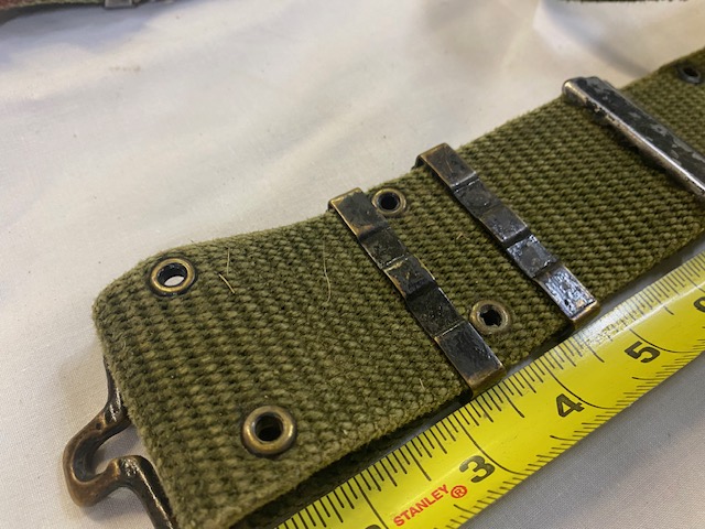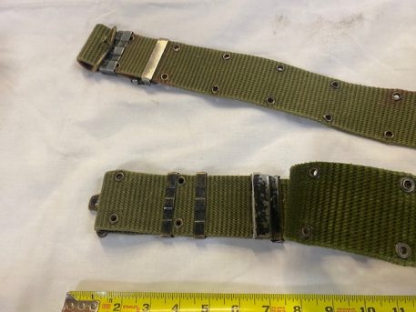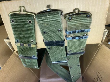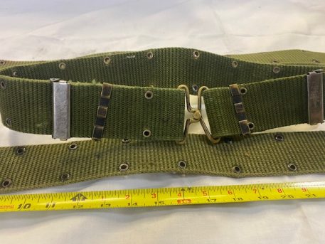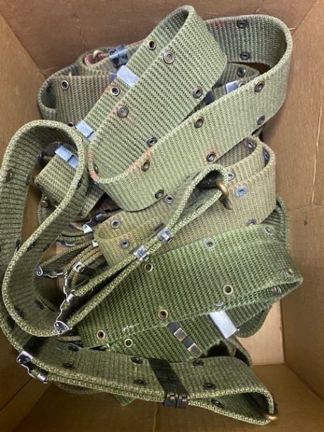 Military issue web pistol belt. Made of strong 2 1/4″ O.D. nylon. These are used and in good condition. Still have years of service left. Buckle types will vary.
