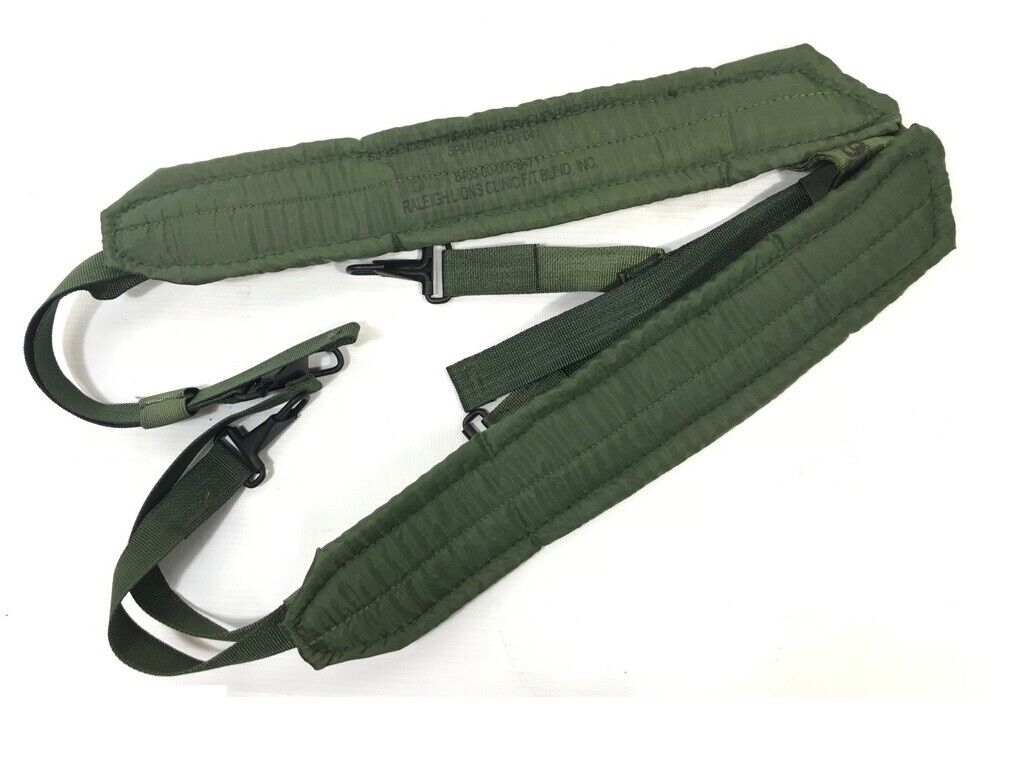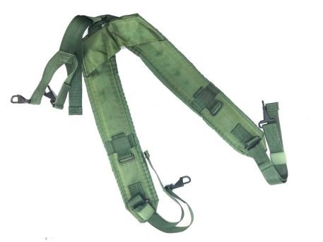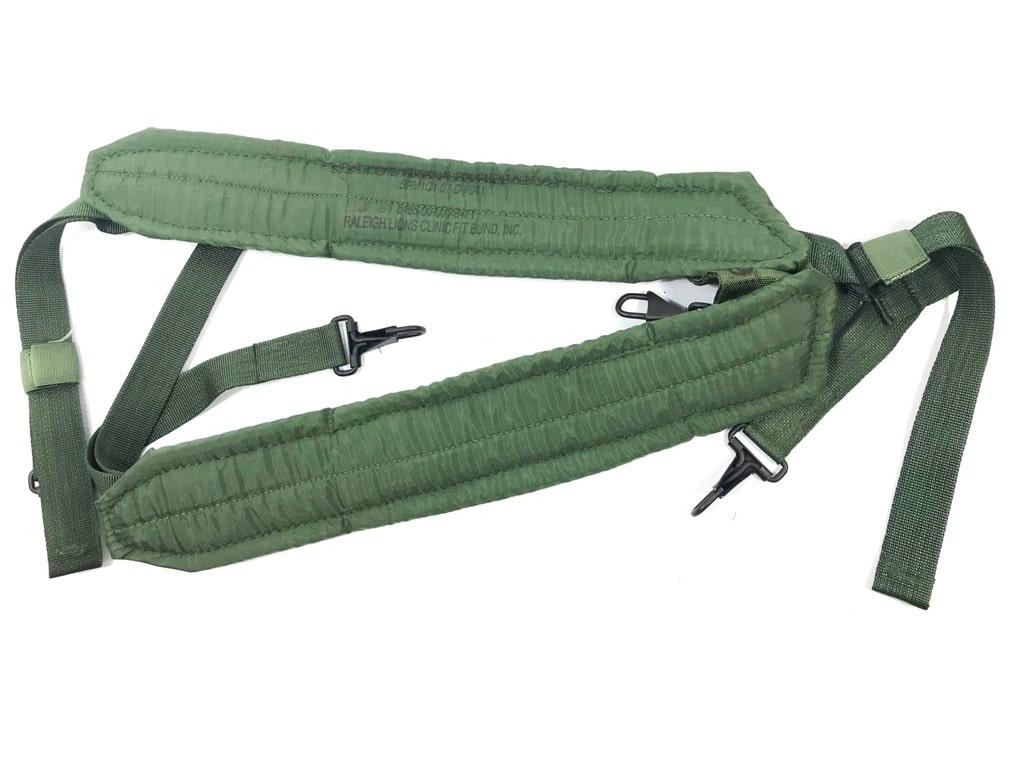 U.S. military nylon LC-1 “Y” suspenders. Supports heavy pistol belt loads on your shoulders. Essential component of the military “Fighting Load” harness system. Great for your tool belt.