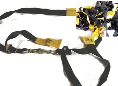 Security strap for air passenger life vest. Makes a good general purpose strap for many uses. 1″ black nylon with chromed clip at either end. Approx. 5 ft. long. Used good condition