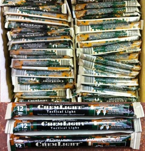 3pk- 6” ChemLight CYALUME Non-toxic-Non-flammable-Weatherproof Tactical Lights. 12 hour life. Made in the USA. 3pks available in All Red, All Yellow, All Orange, or 1 of each Mixed.