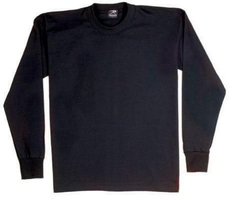 Long Sleeve cotton / poly t-shirts in solid black color. Military style