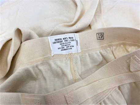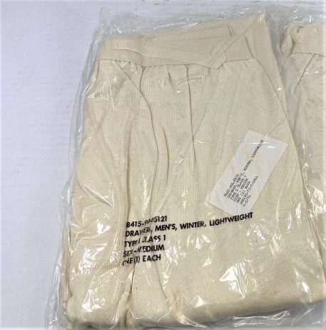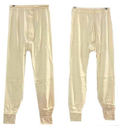 50% wool / 50% cotton thermal pants bottoms. New, old stock. In original government packaging.