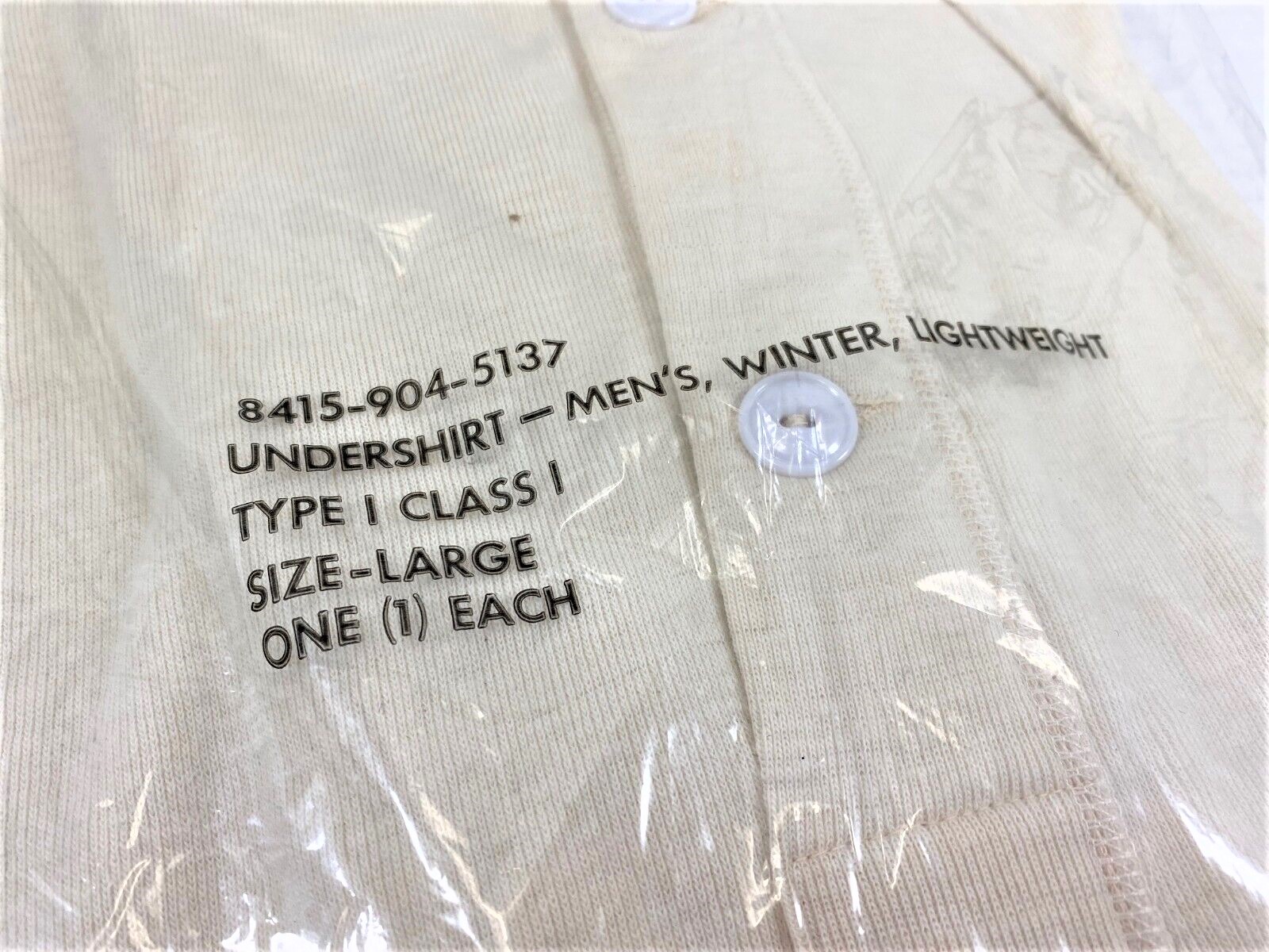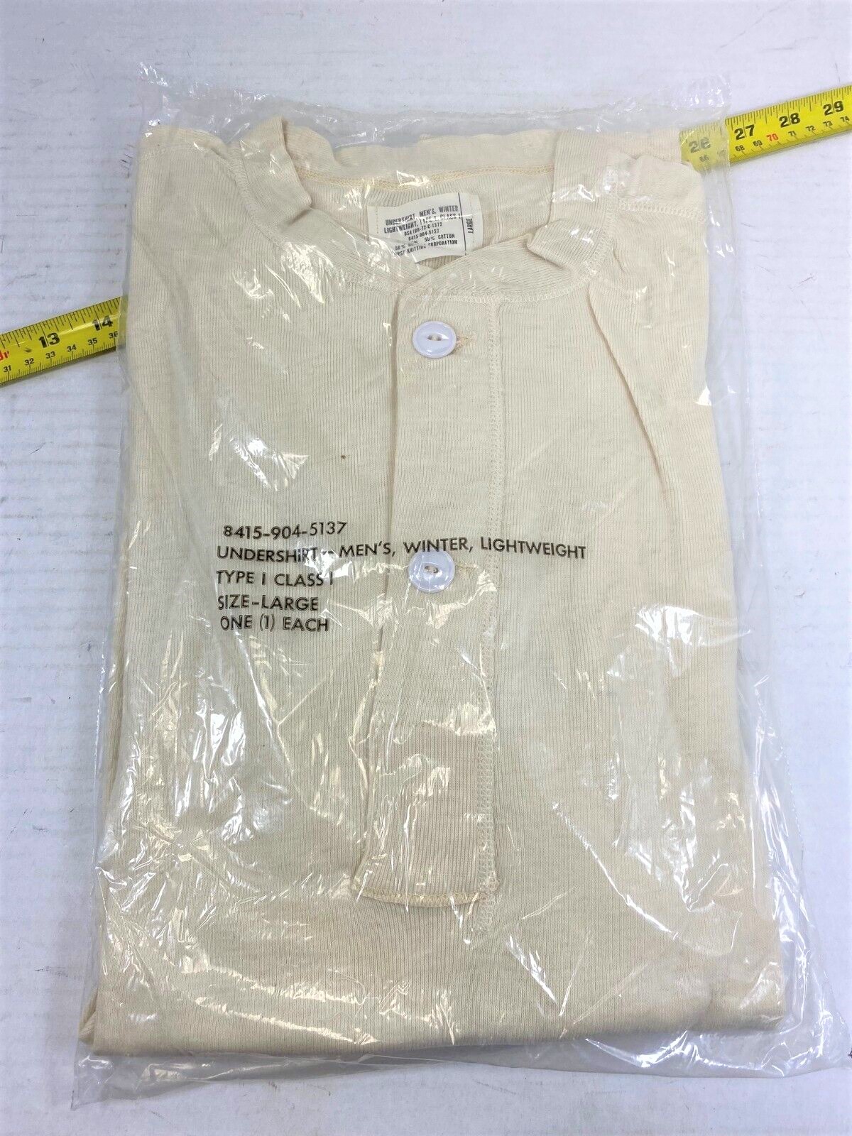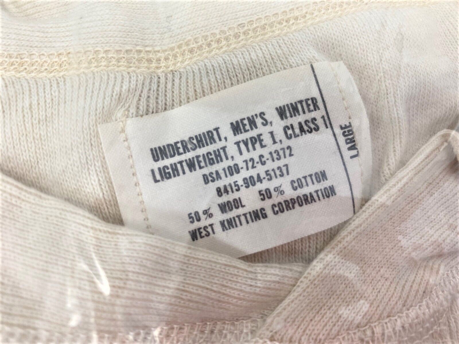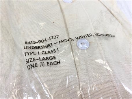 These are 50% wool / 50% cotton thermal top. New, old stock. In original government packaging.