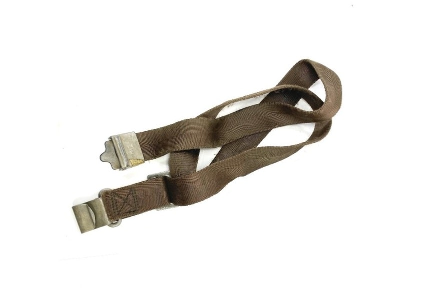 Original issue NYLON with quick adjuster metal hardware. Also used on M16/AR15 and M14 rifles. 1 1/8″ x 40″. Used, rough condition with lots of stains and rust.