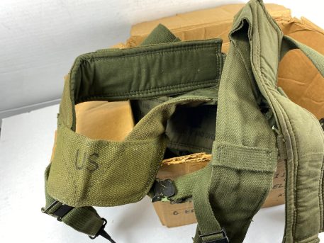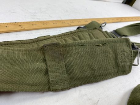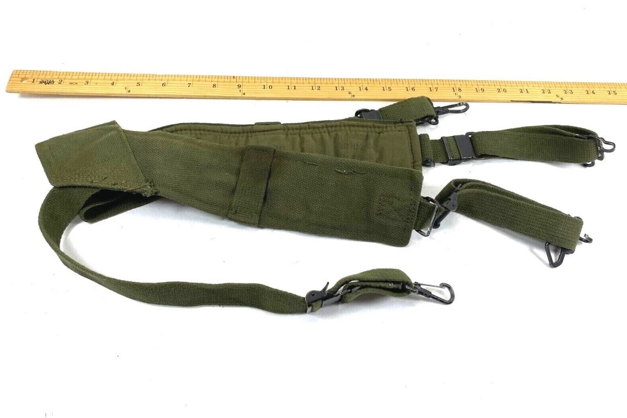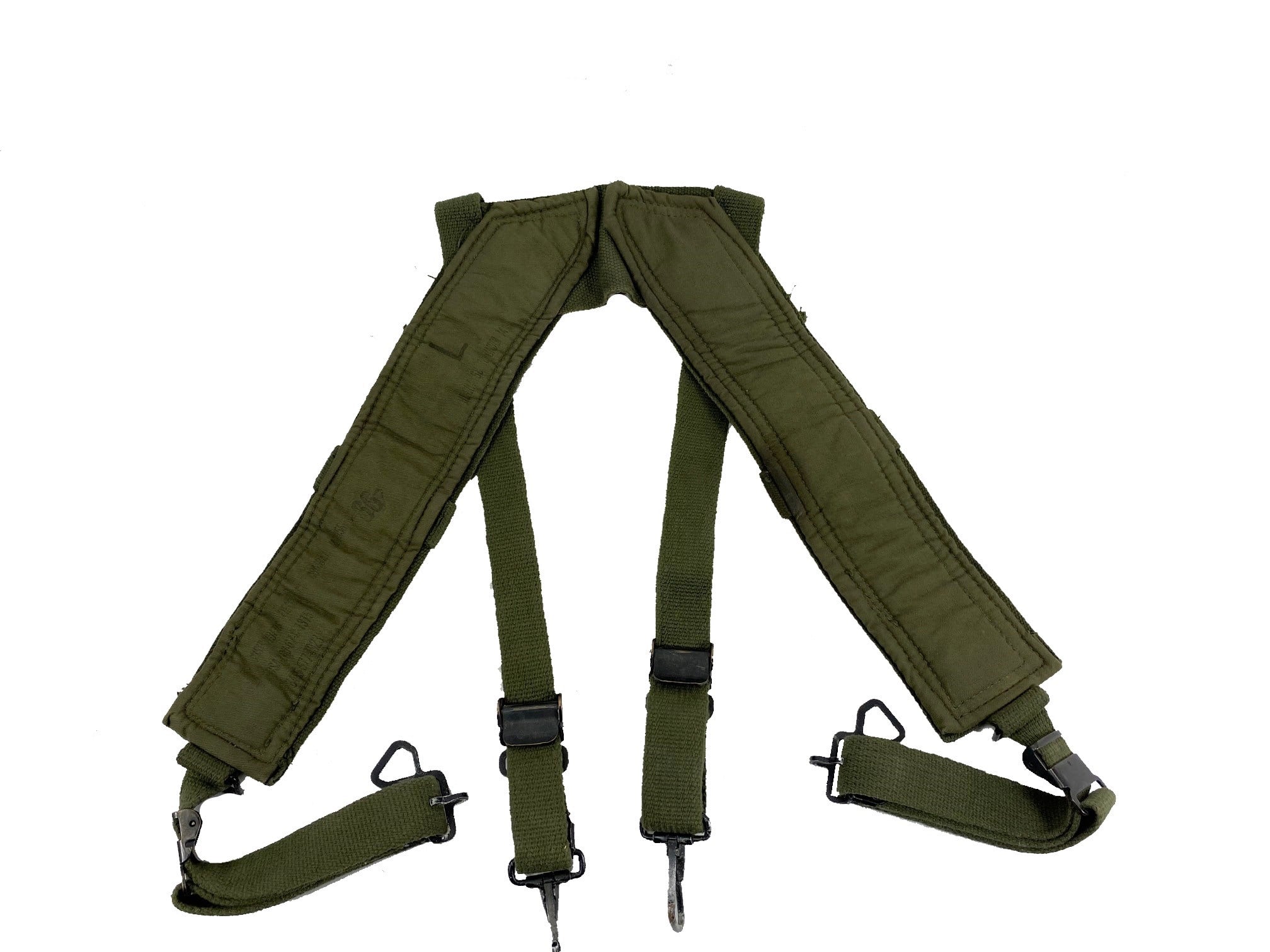 Original issue canvas combat suspenders from Vietnam. These are the much sought after “Long” version. Used better condition, slight wear and tear and mismarkings/markings on canvas. Not all nomenclature visible, but all parts and pieces are intact and functioning. For those who like to wear them a little lower than regulation. Limited supply.