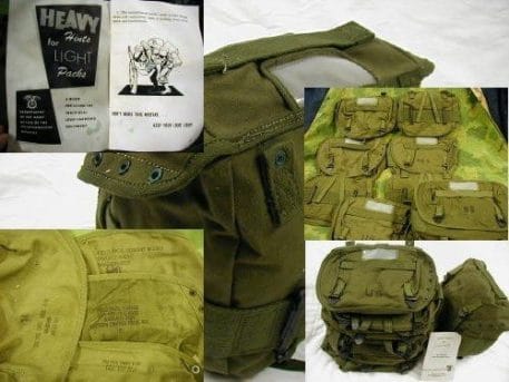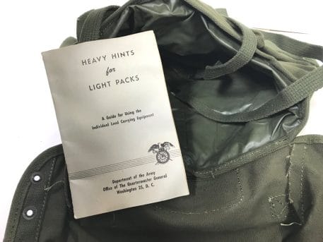 Field pack, Butt pack, fanny pack…all of these terms originated in Vietnam when this pack was put to the test. All are Vietnam Issue, msc 60 dates, date stamped and manufacturer will vary. While these are new, mint condition, never issued; some will show minor signs of storage and or shelf wear. Most of plastic identification holder tag are rubbed/scratched. Each pack includes it’s original manual entitled “Heavy Hints for Light Packs”.