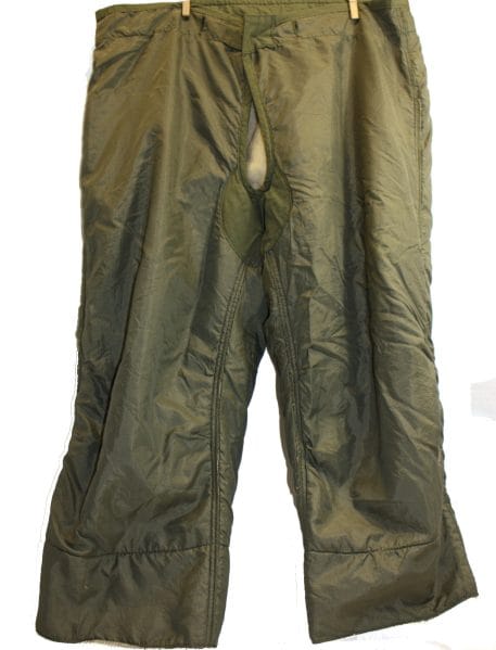 Cold weather field pant liners for the military field trousers. Army green Nylon material with 100% wool material.. Button-in to the M-51 field trousers with these liners. Size Medium. New original GI. sold in a 2 pack.