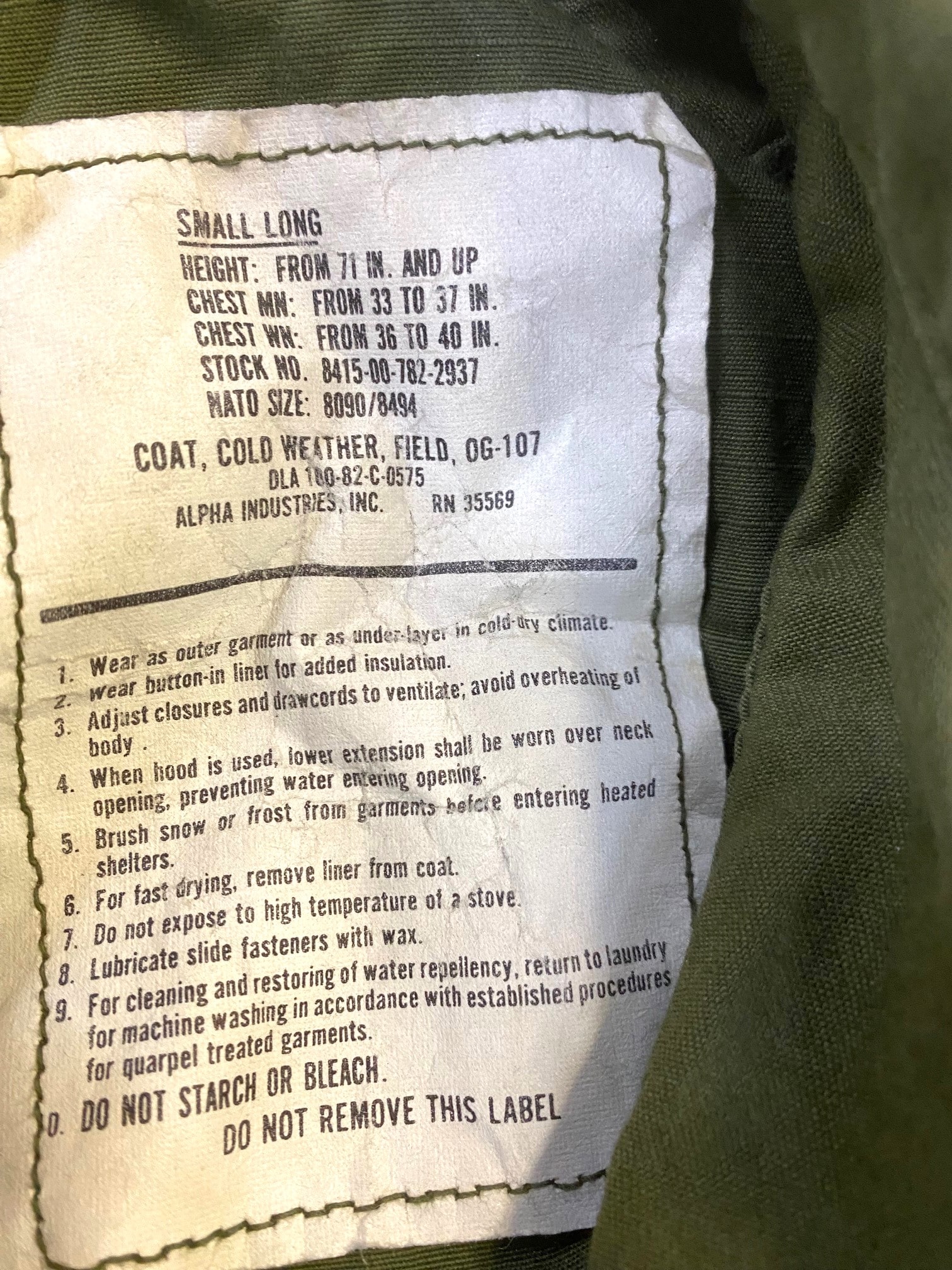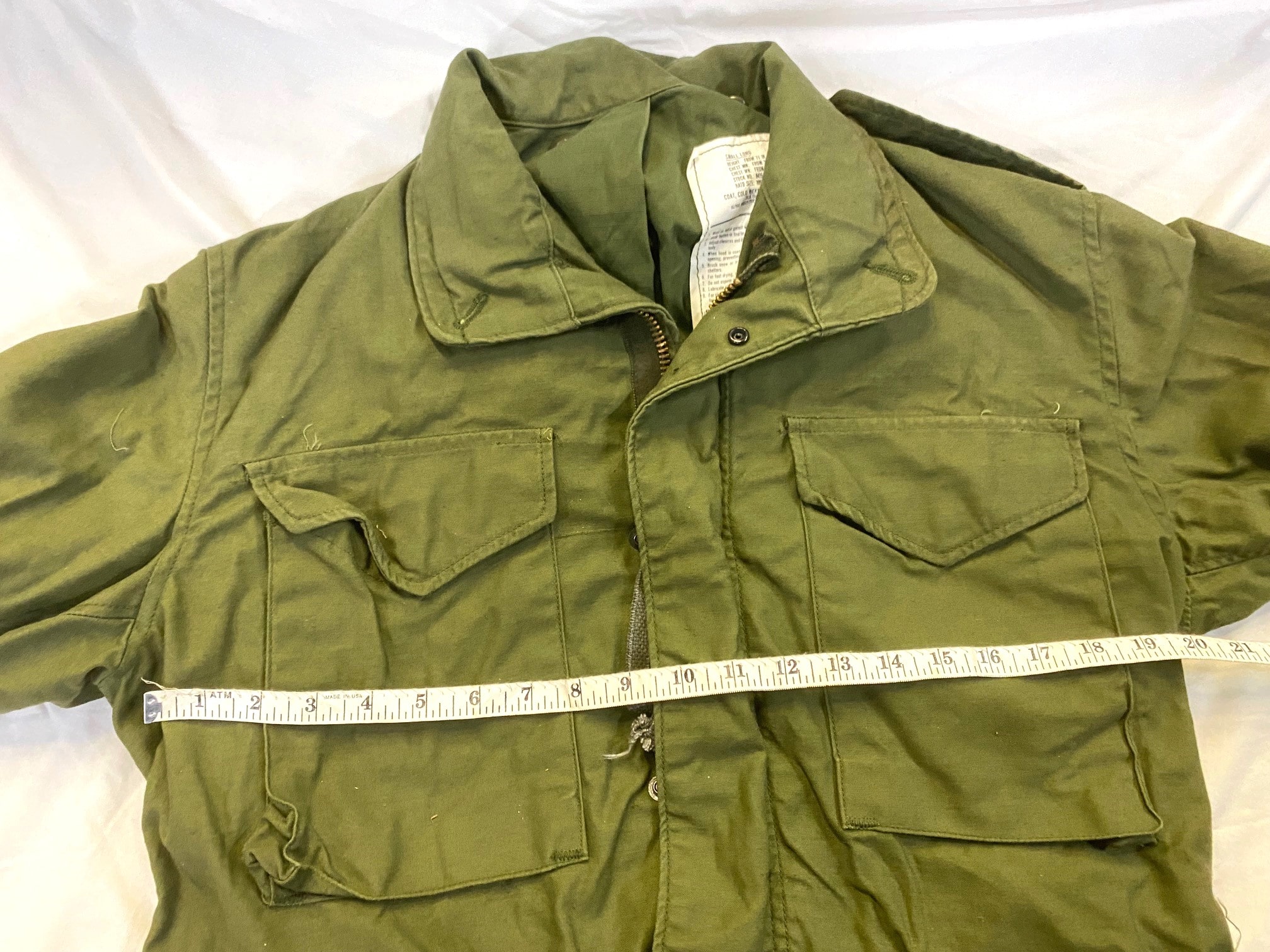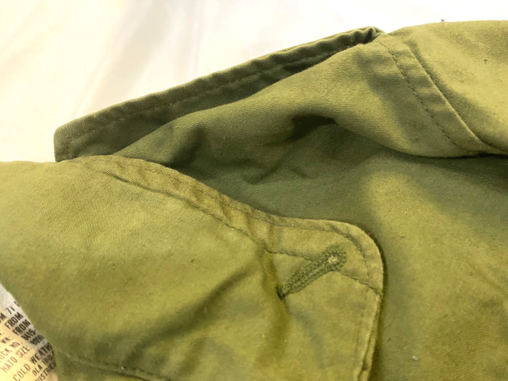 ORIGINAL, US O.D. Field Jackets. used condition. Some small blemishes from storage and use. *Browning on these jackets* Miscellaneous manufactures and dates.