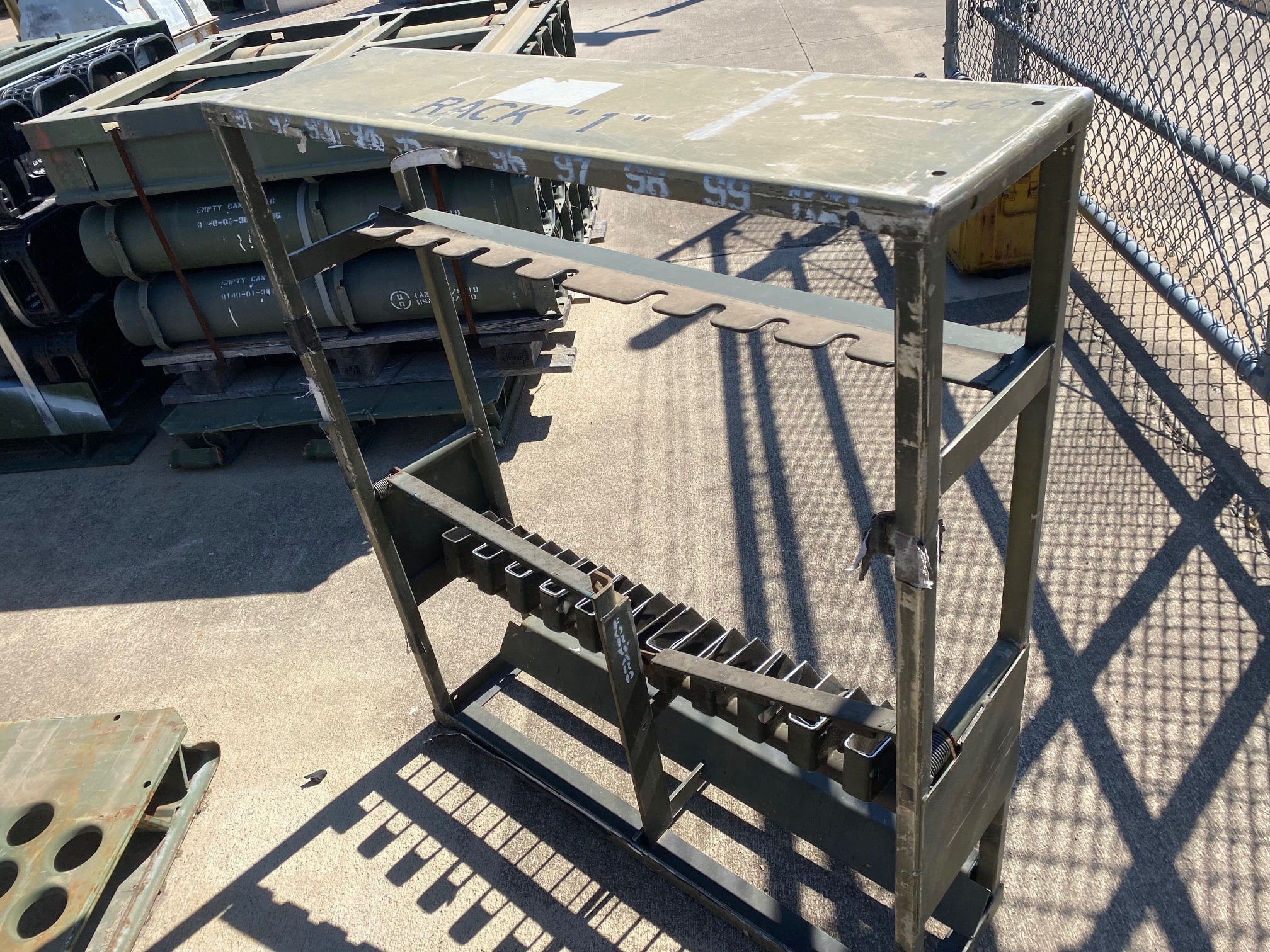 Used condition rifle racks for m-16 type style rifles. Racks can fit up to 10 rifles. In store purchase only.
