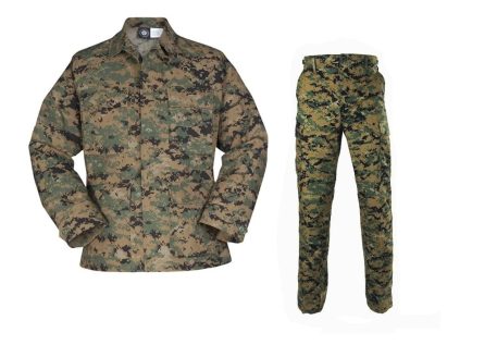 Marine Corps STYLE(repro) pixel camo. Digital BDUs. Marpatt. Can be variety of styles and manufacturers depending on availability. Pockets may be straight or slanted depending on availability.