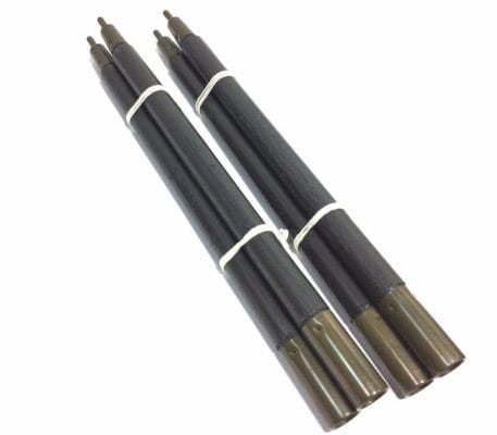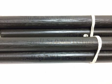 Each pole is 16″ long and 3/4″ in diameter. 3 poles fit together for each end of the shelter half. 6 poles total in this package. The poles are made of wood with aluminum fittings. Most have 90’s dates. Includes 2- 3pc. sets. Enough for 1 complete pup tent. These poles can also be fitted together in longer combinations to form a variety of different lean-to application.
