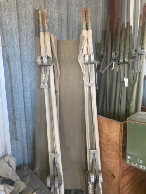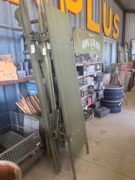Original issue military field medical stretcher. Different styles and types. Due to this item’s bulky nature, this item is not available for online sale, only available in store for store/local pick up only
