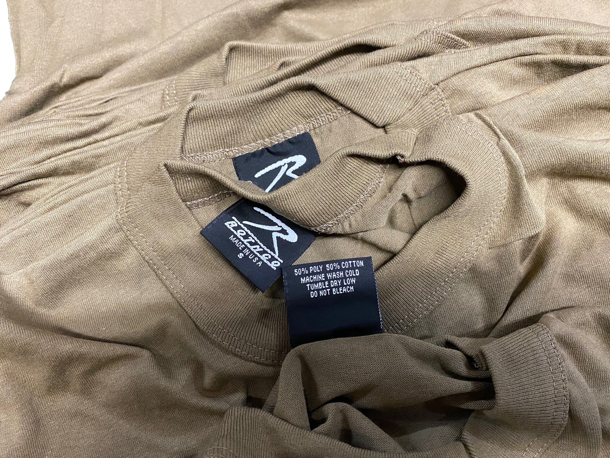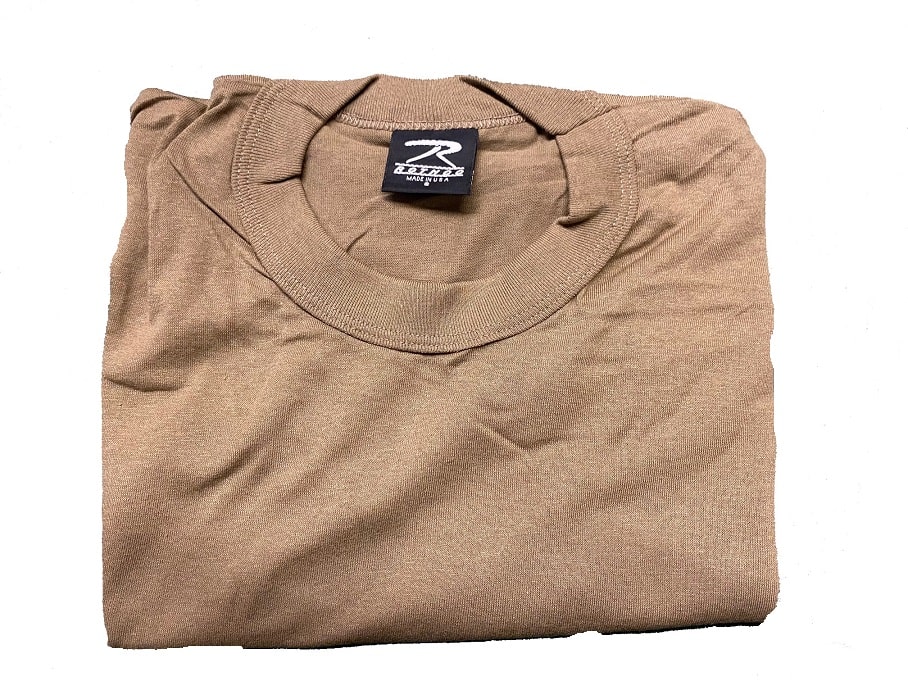 Size small only. Military issue undershirt. Tee Shirt for U.S. Forces for 20 years. They are new – slight factory IRR’s but very serviceable with no rips tears or holes. Solid brown military t-shirt. 50/50 poly-cotton