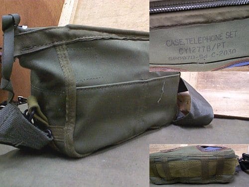 Military issue telephone case. Heavy duty canvas zipper case. Comes with adjustable shoulder strap. New original surplus.Comes in original box.