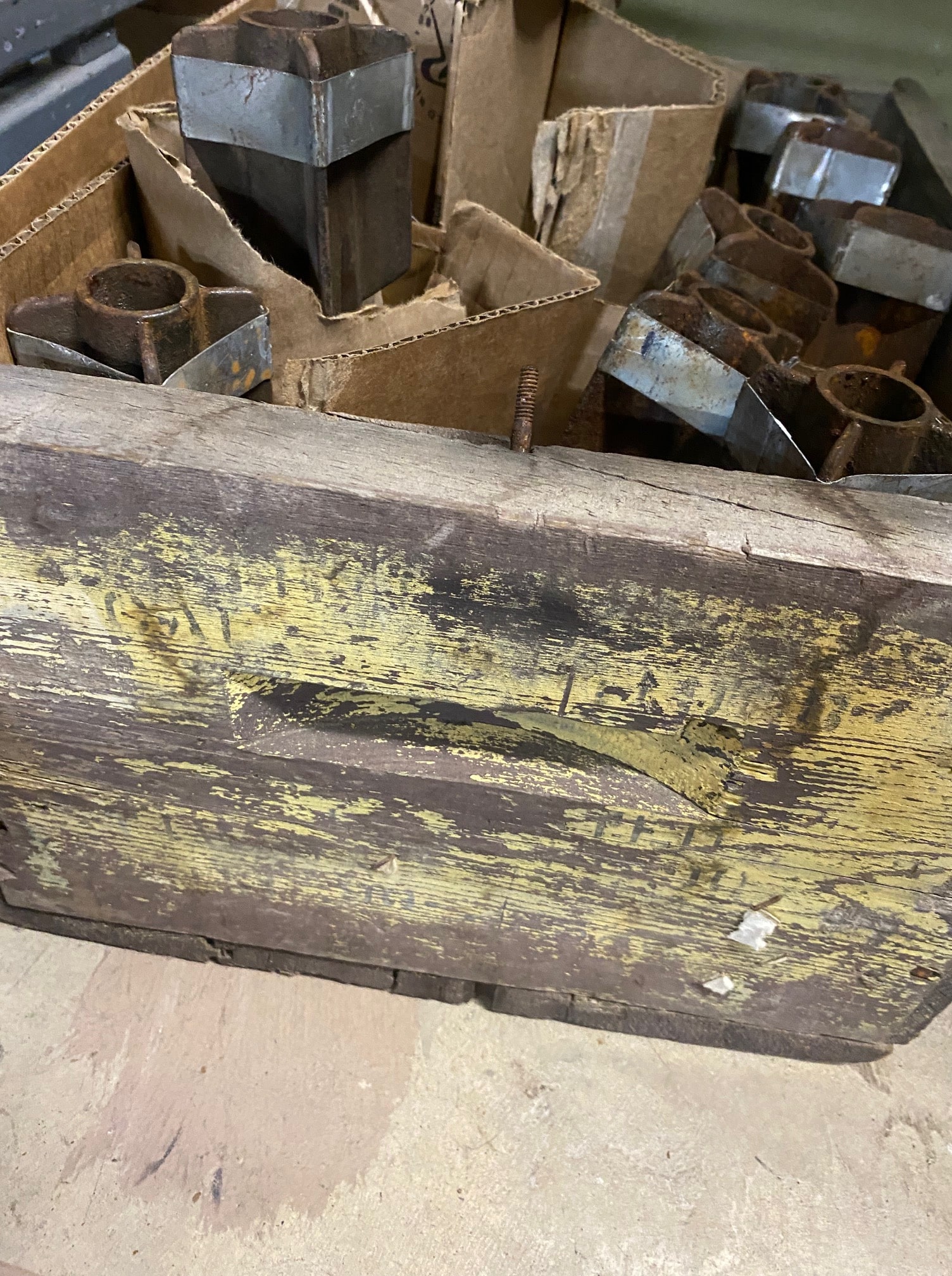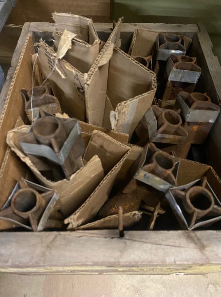 Blast from the past! Miniature 3lb CAST IRON practice bombs, rusty. We sold many of these over the years. Ran into one last crate of them. Enjoy 🙂