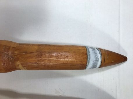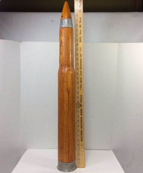 During the early 1940’s, German U-Boats were sinking so many of our Merchant Ships, that the Navy installed one of these guns on the front deck of each ship, with a special crew to man them. These are the original practice rounds used in training our sailors. Great for décor, doorstop, conversation piece, etc. You may find other practice shells, but none this unique. The beautiful turned oak is rugged yet elegant. Dated 1944, they are a true piece of artillery memorabilia. Still in original box but there has been some degradation overtime…mostly in very nice condition but will probably need some clean up and or rust/patina removal if you want to polish them up. Trench Art *heavy item-expect extra shipping charges. All wood version mk-6. Made by Harris Manufacturing