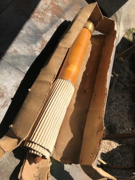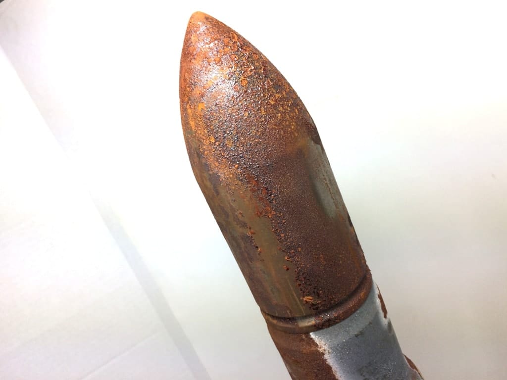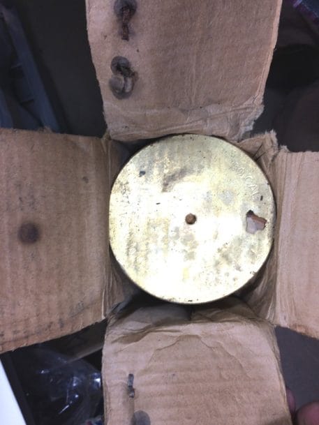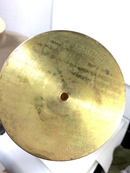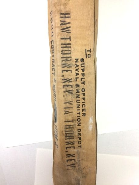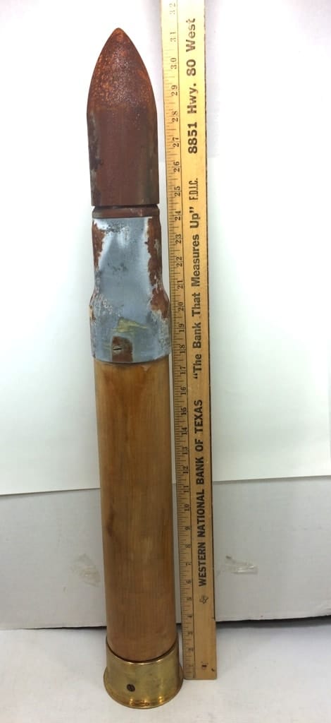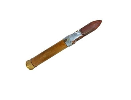 During the early 1940’s, German U-Boats were sinking so many of our Merchant Ships, that the Navy installed one of these guns on the front deck of each ship, with a special crew to man them. These are the original practice rounds used in training our sailors. Great for décor, doorstop, conversation piece, etc. You may find other practice shells, but none this unique. The beautiful turned oak is rugged yet elegant. Dated 1944, they are a true piece of artillery memorabilia. Still in original box but there has been some degradation overtime…mostly in very nice condition but will need some clean up on rust/patina removal if you want to polish them up. They look great after a good clean up with a wire brush and WD-40. Trench Art *heavy item-expect extra shipping charges. Metal/wood version mk-6.