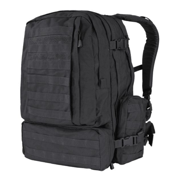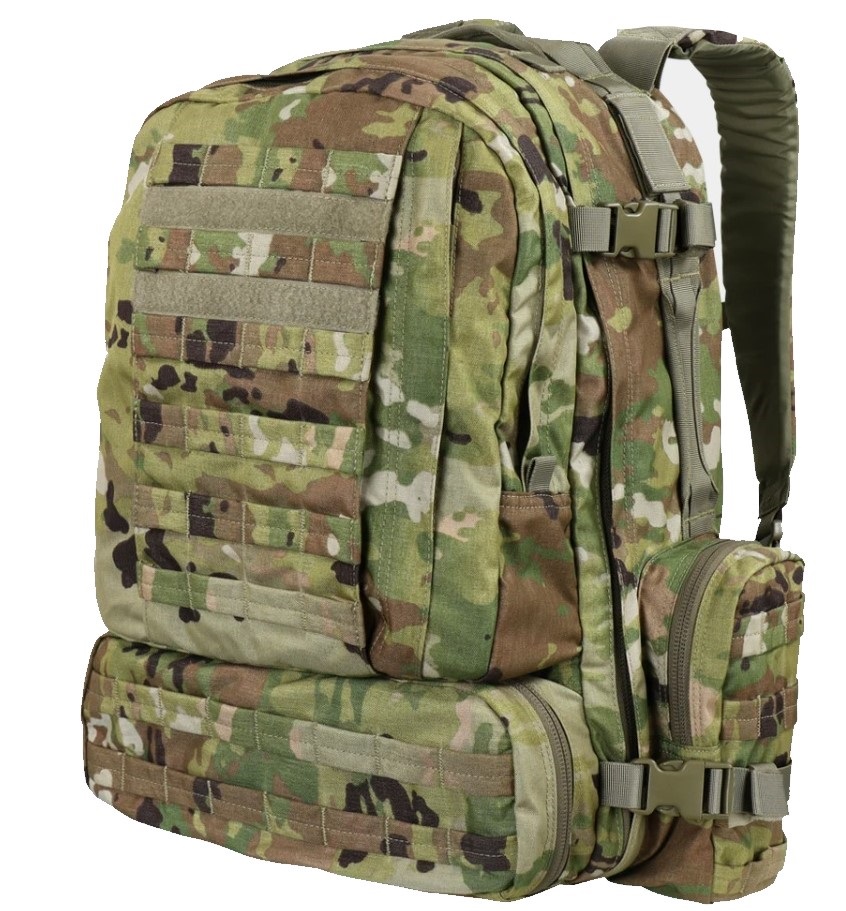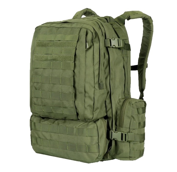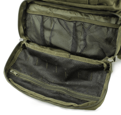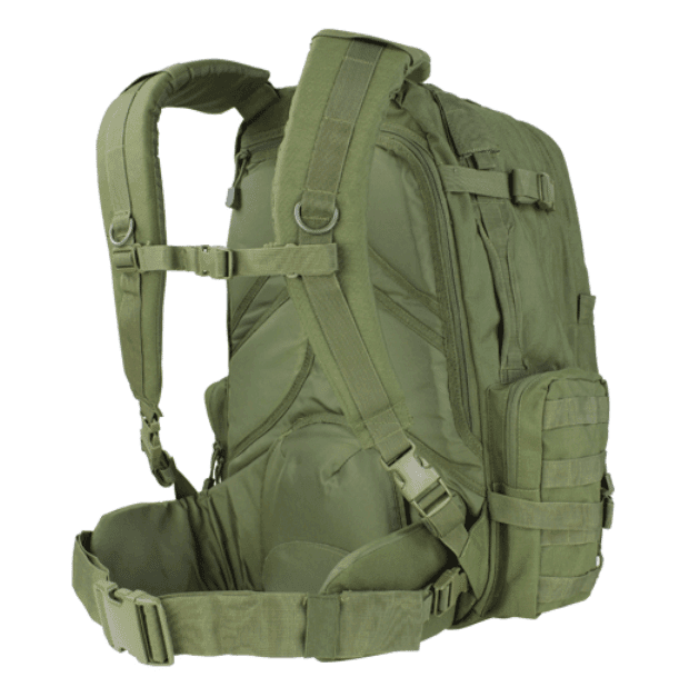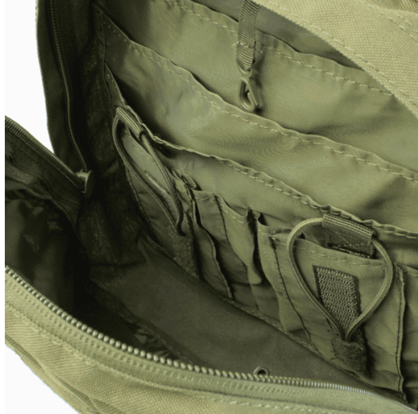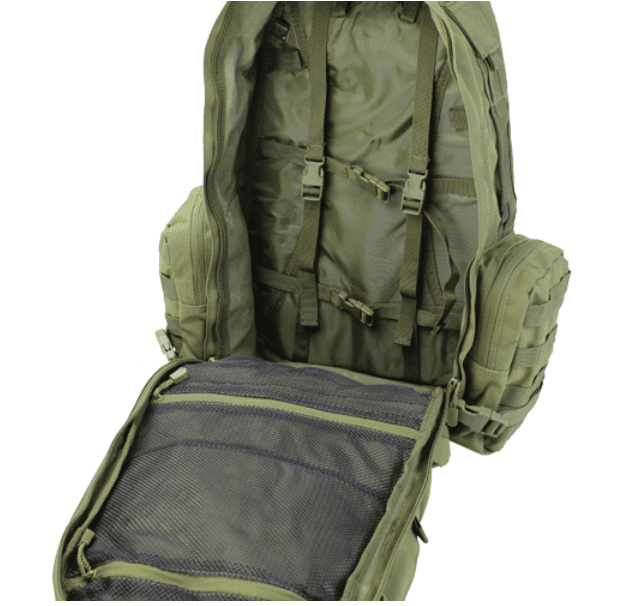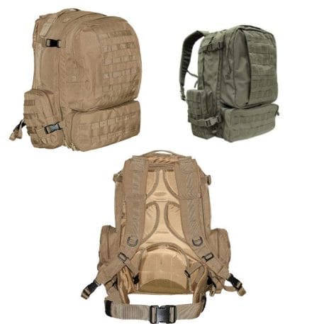 Large load cargo capacity compartment with separate pocket to fit up to two 3L hydration bladders. Body contour shoulder straps with D-Ring for equipment attachment, sternum strap and waist belt. External side compression straps. Heavy-Duty carry and drag handle. Two double zipper pulls on the main compartment for easy access. Individual form pad back panel for extra comfort and maximum airflow. Grommets on all compartments for drainage. Total of seven compartments: Main Compartment with gear straps to secure gear and two extra mesh pockets. Second Compartment contains three, map/document pockets, two radio pockets, and pen holders. Two large pockets on the back, bottom pocket (12.5″ x 6″ x 3″) with three elastic closure mesh pockets and a zipper mesh pocket. Two side pockets (9″ x 5″ x 2.5″) one on each side. One Compartment for hydration systems. Made in China.