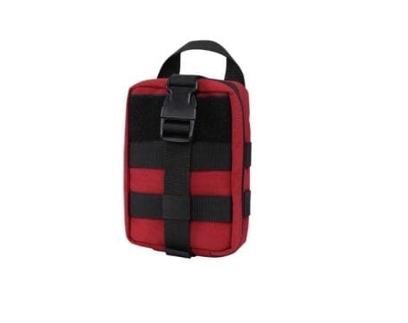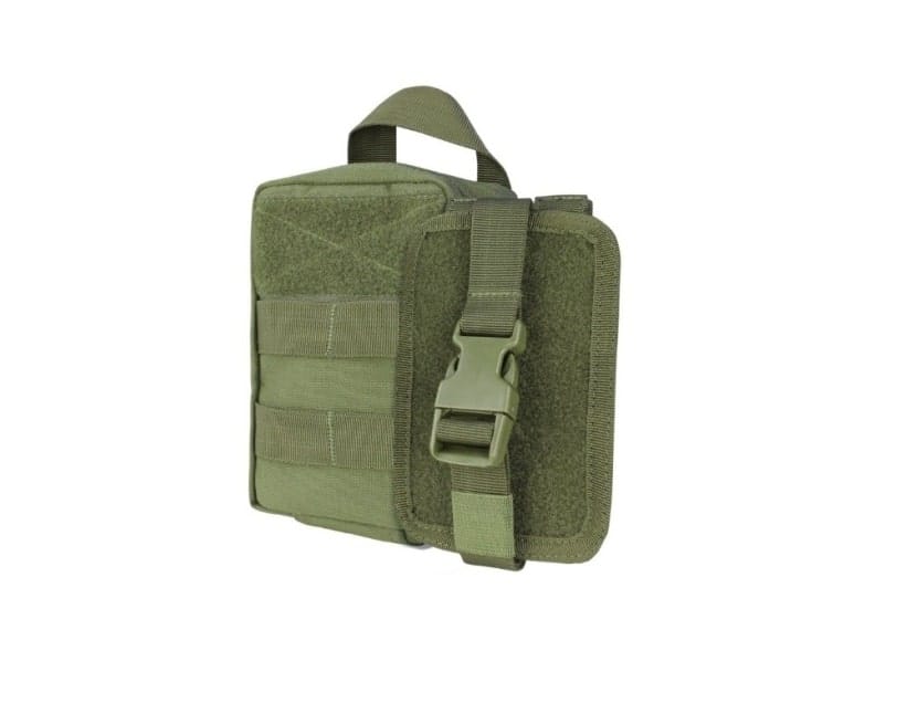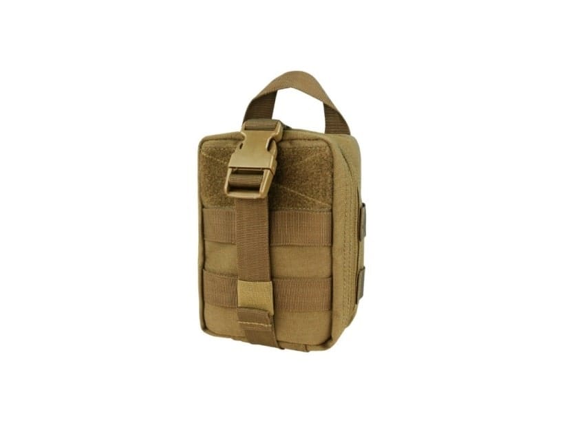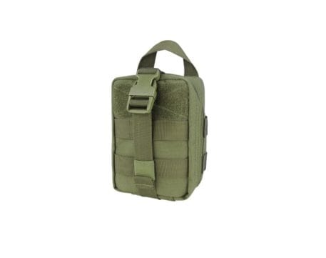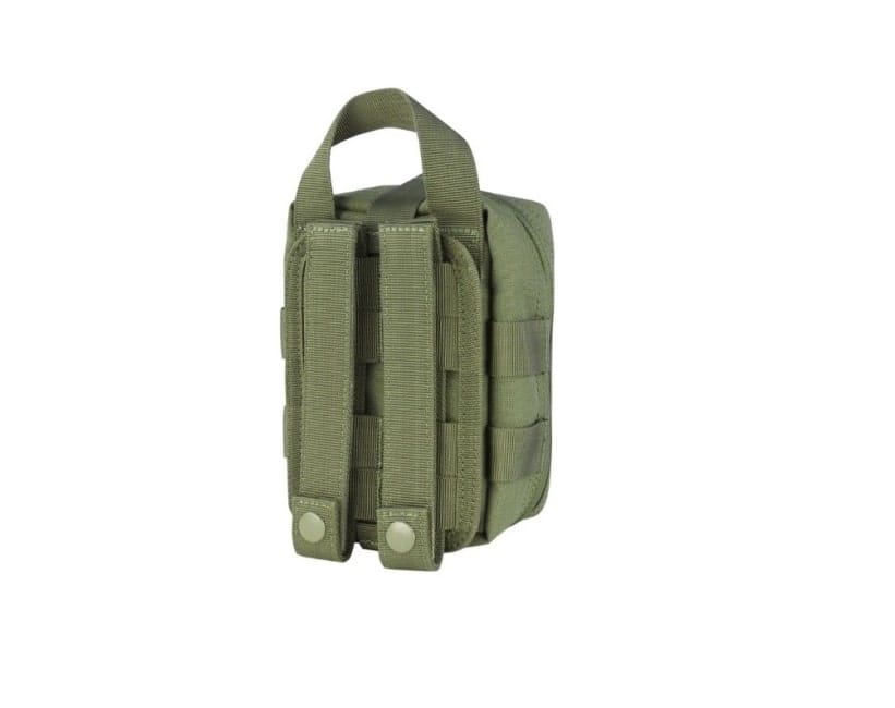 Rip away quick deployment design with quick release buckle. MOLLE webbing for modular attachments.