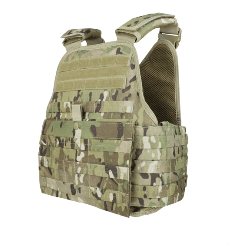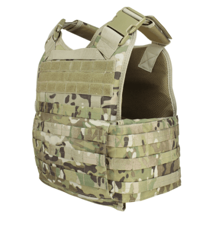 Emergency drag handle, removable anti-slip padded shoulder pads with hook and loop guides. Adjustable shoulder straps with hook and loop webbing. Heavyweight webbing for modular attachments, front map pocket with snap- hook and loop closure. Side release buckles on shoulders and internal waist strap with padded mesh interior lining.
