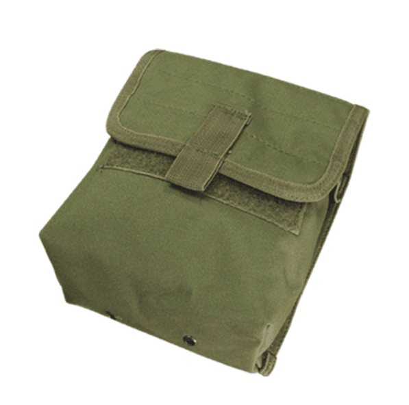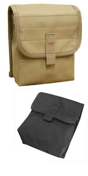 Modular ammunition pouch for current issue molle gear. Hook and loop snap closure with secondary elastic dirt and sand protective cover. MOLLE attachment straps.