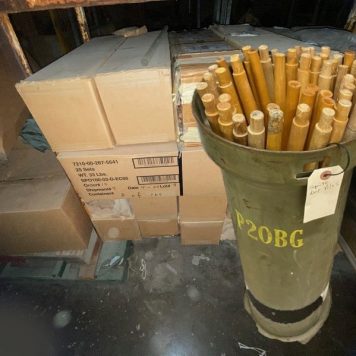 25- 4pc wood pole sets for US mosquito net. In original government packaging box (does not include howitzer can in picture).