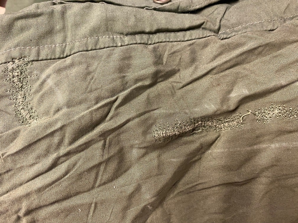Used with plenty of wear but no major holes, repairs. Very serviceable. Does not include lace-in strap. About 90″ long overall. Weighs 2.5 lbs.
