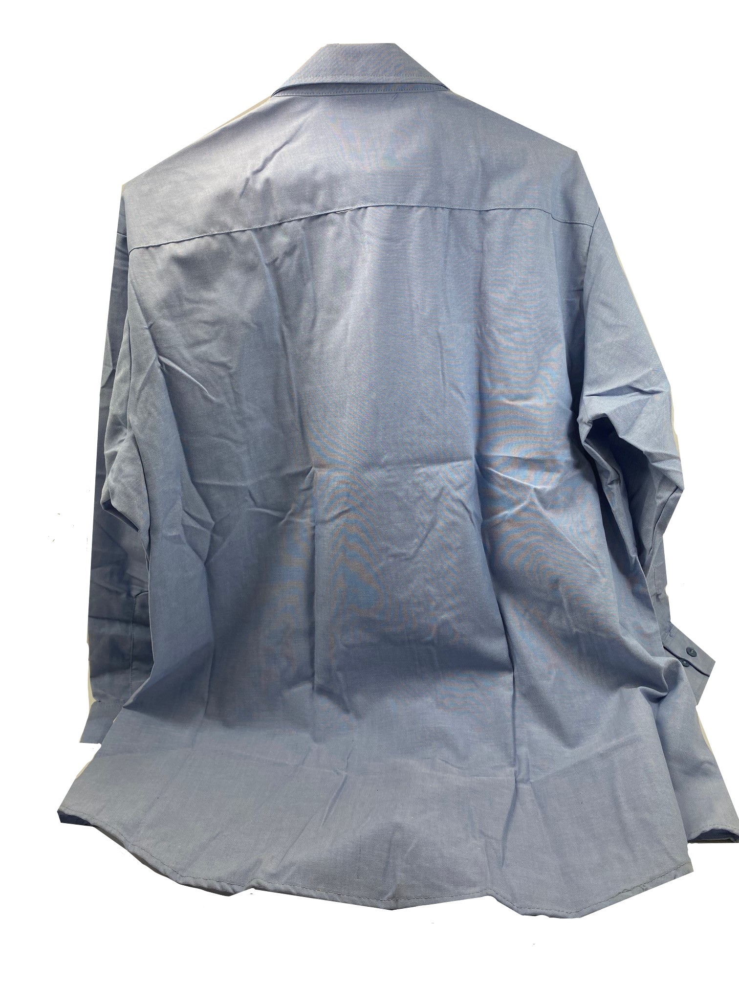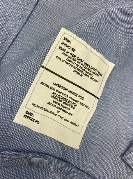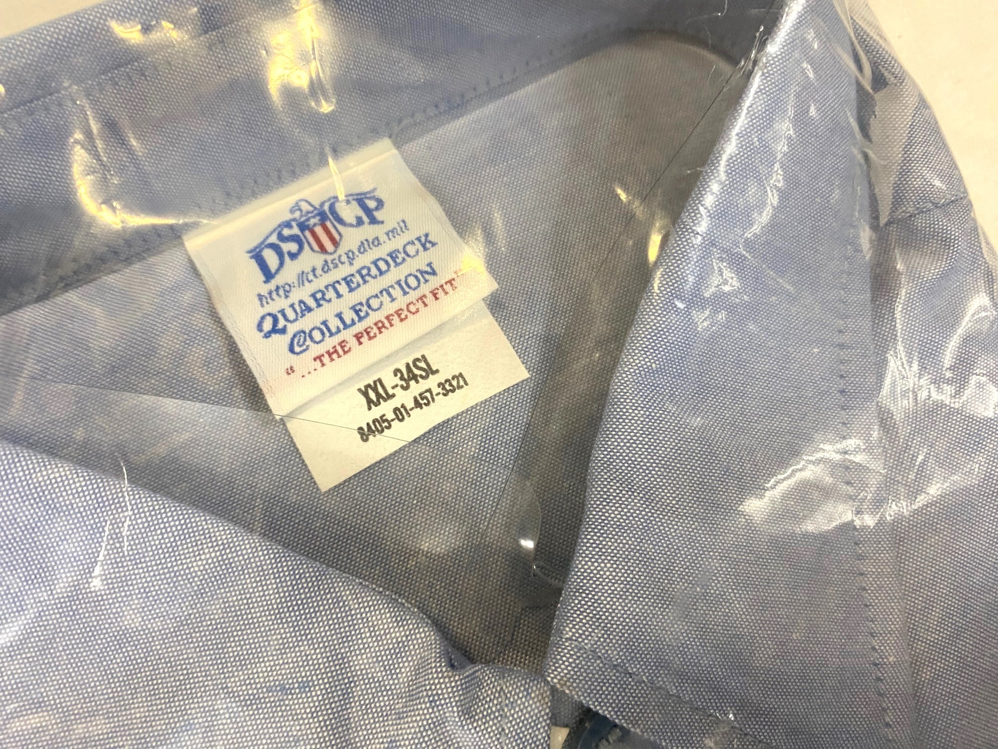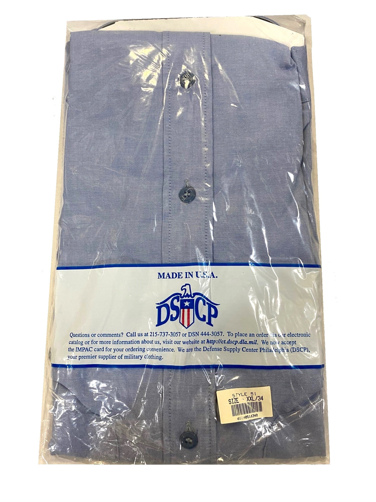 Navy chambray blue work shirt. Enlisted men wear these with the bell bottom trousers for everyday work-wear. Superior quality and extra big size too. XXL fits 46-50″ chest sizes and 32-34 inch sleeve length. New in original military government packaging.